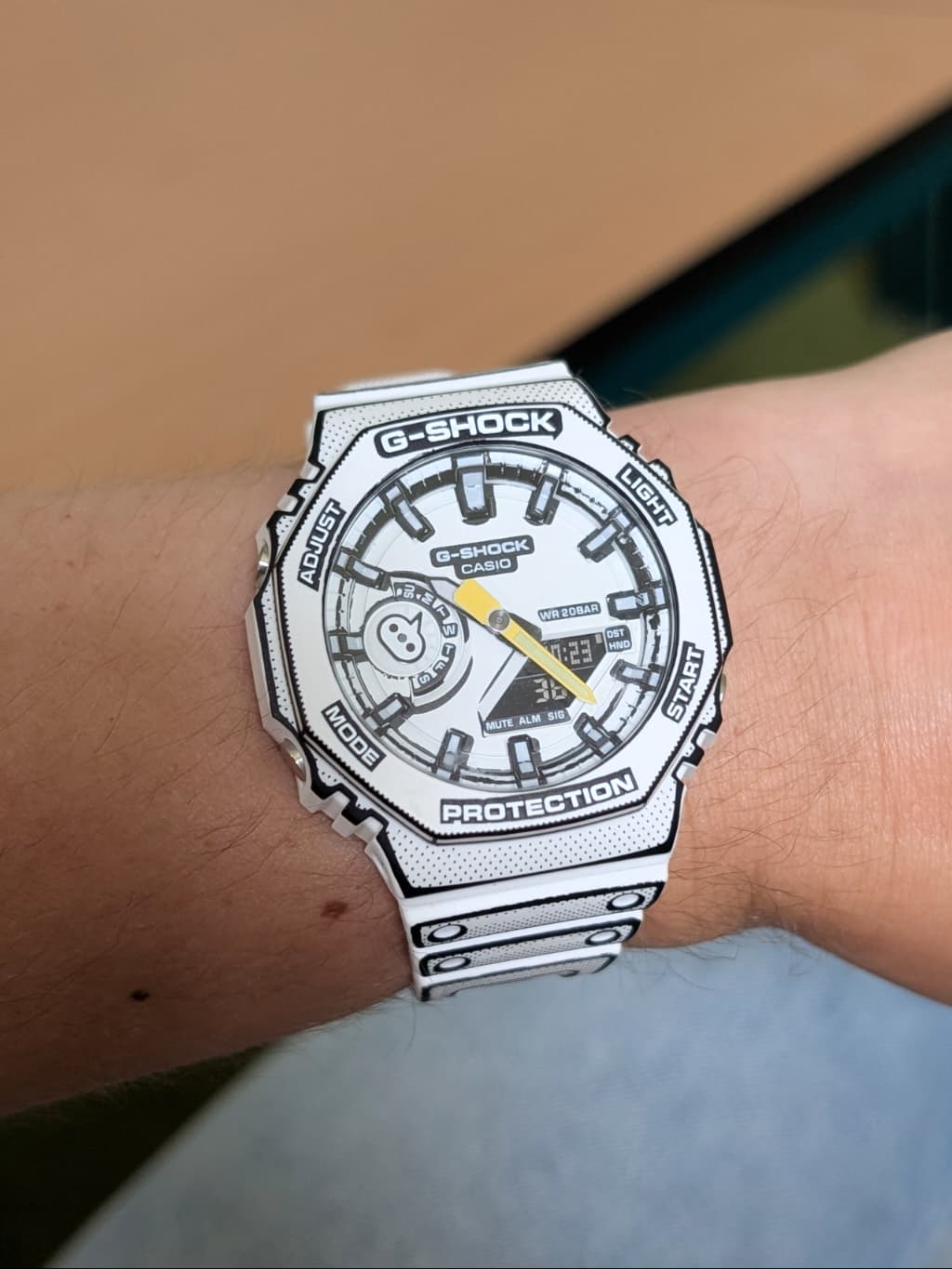 Het is een G Shock Manga White en ik weet er genoeg van om te weten dat er een hoop fakes in rondgang zijn. Mijn vraag is of jullie het kunnen zien aan deze fotos.