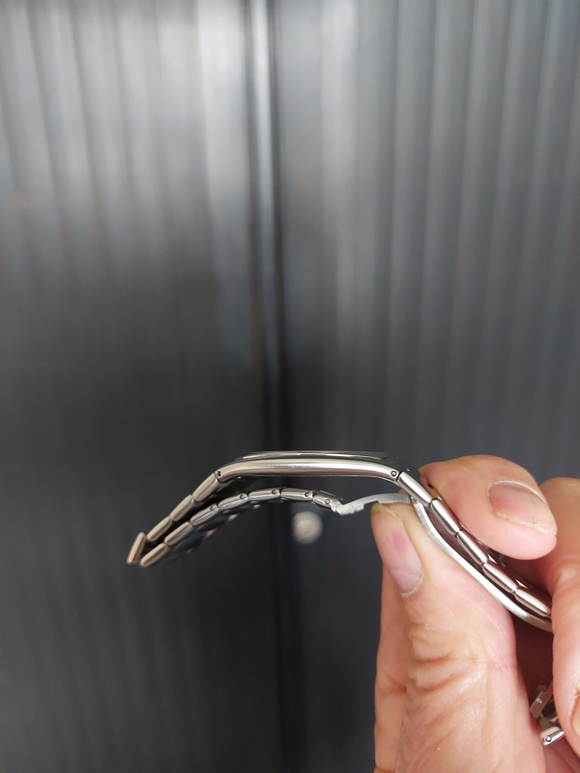 Zeer plat horloge (5.5 mm) met prachtige band met vouwsluiting. Geschikt voor pols tot 18 cm.