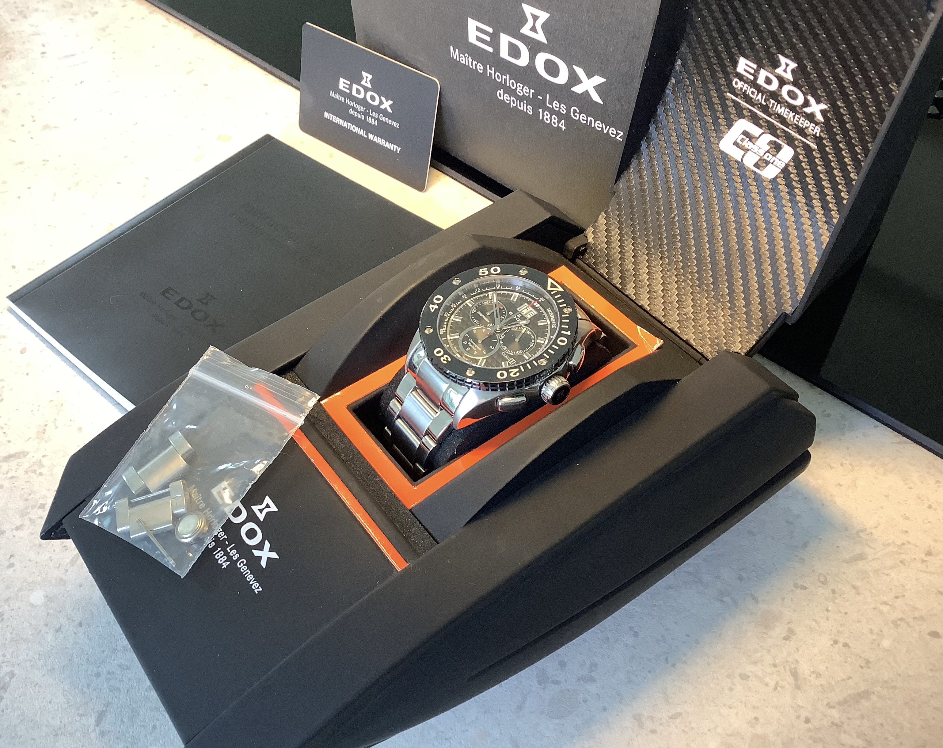 Beste Edox specialisten, ik vraag jullie graag om hulp met het horloge van mijn schoonvader. Hij heeft het ooit cadeau gekregen maar draagt het eigenlijk niet, recent voorzien van een nieuwe batterij en loopt verder prima.