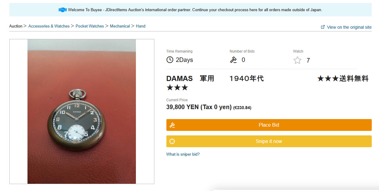 Maar € 230,- + verzending & tax is misschien wel redelijk voor een Military Issued zakhorloge van dit kwaliteitsmerk. Als ie in goede werkende staat is tenminste en als je zo iets erg graag wil hebben.