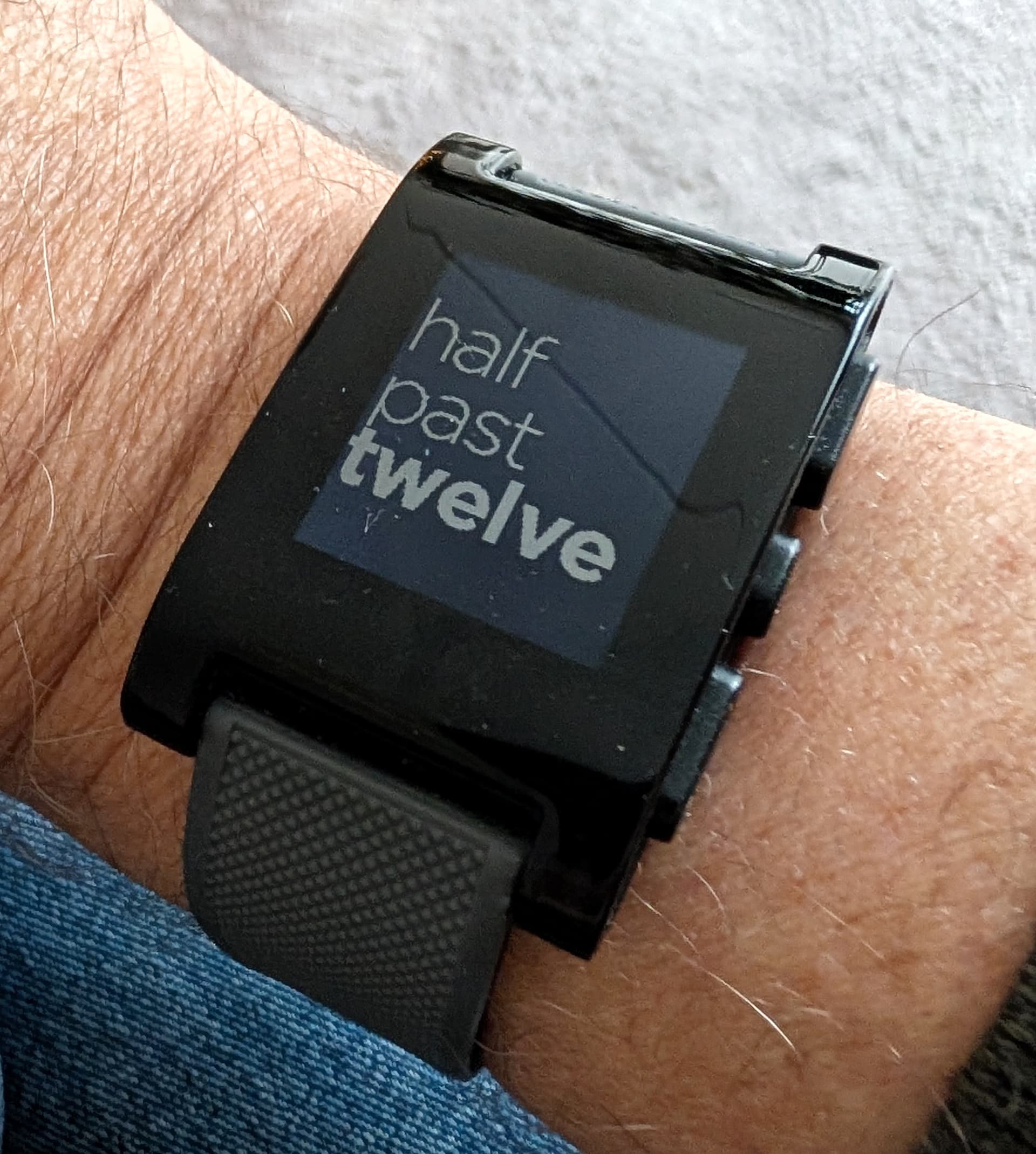 Intussen draag ik mijn oude, die nog blijkt te werken. Op de rechter pols natuurlijk, links een “echt” horloge.