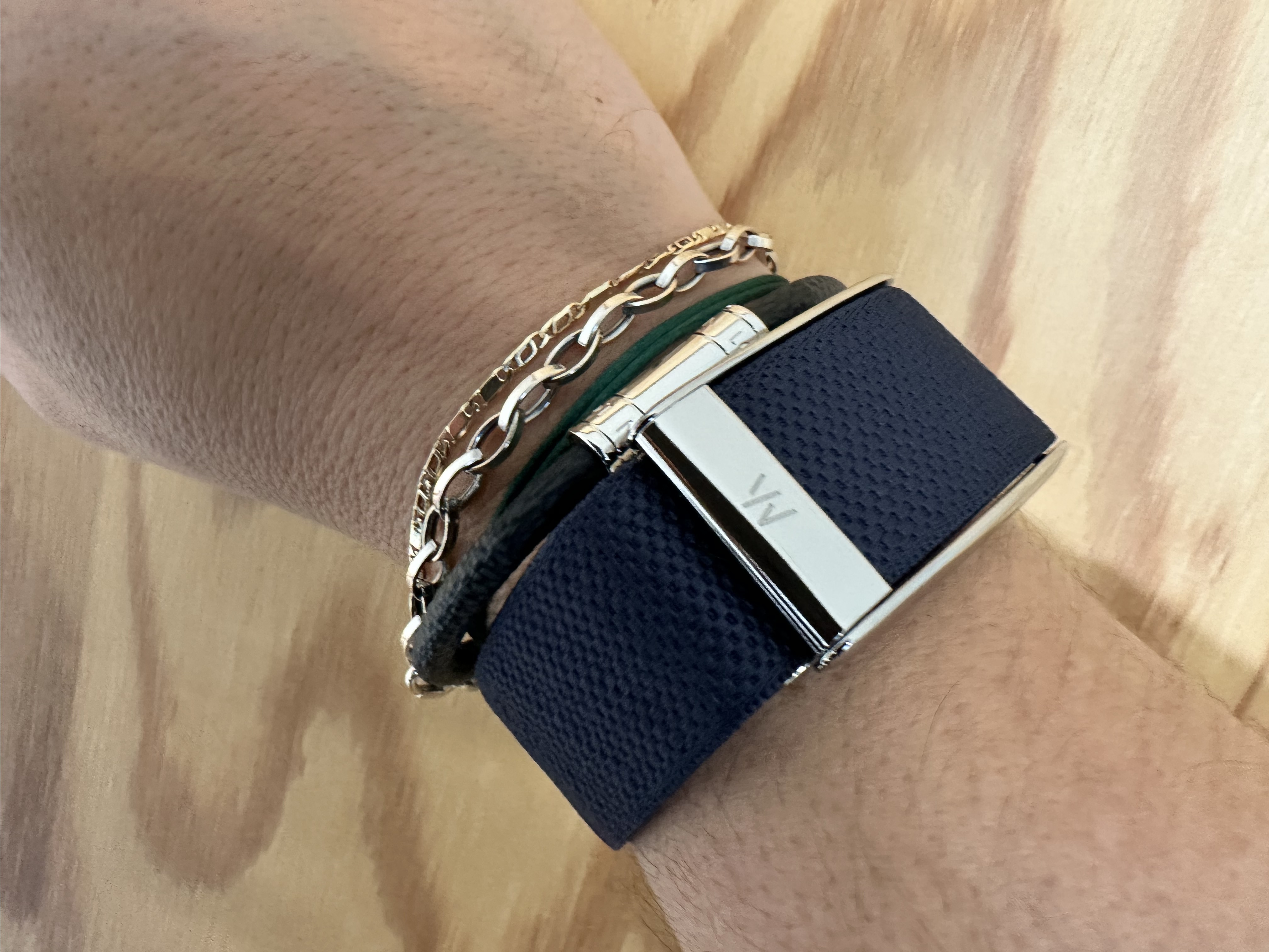Ik zou hem Dan wel links moeten dragen. Rechts zit al een enkelband
