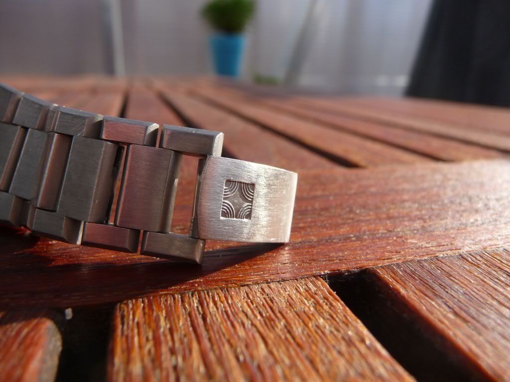 De kast en band zijn zoals ze horen te zijn. De bezel heb ik al eerder gepolijst en de band en kast heel subtiel een beetje bijgewerkt. Voor zover als ik weet is de band van Zenith/Movdao zelf, maar ik kan me vergissen. Hieronder twee foto’s van de sluiting waarnaar is gevraagd: