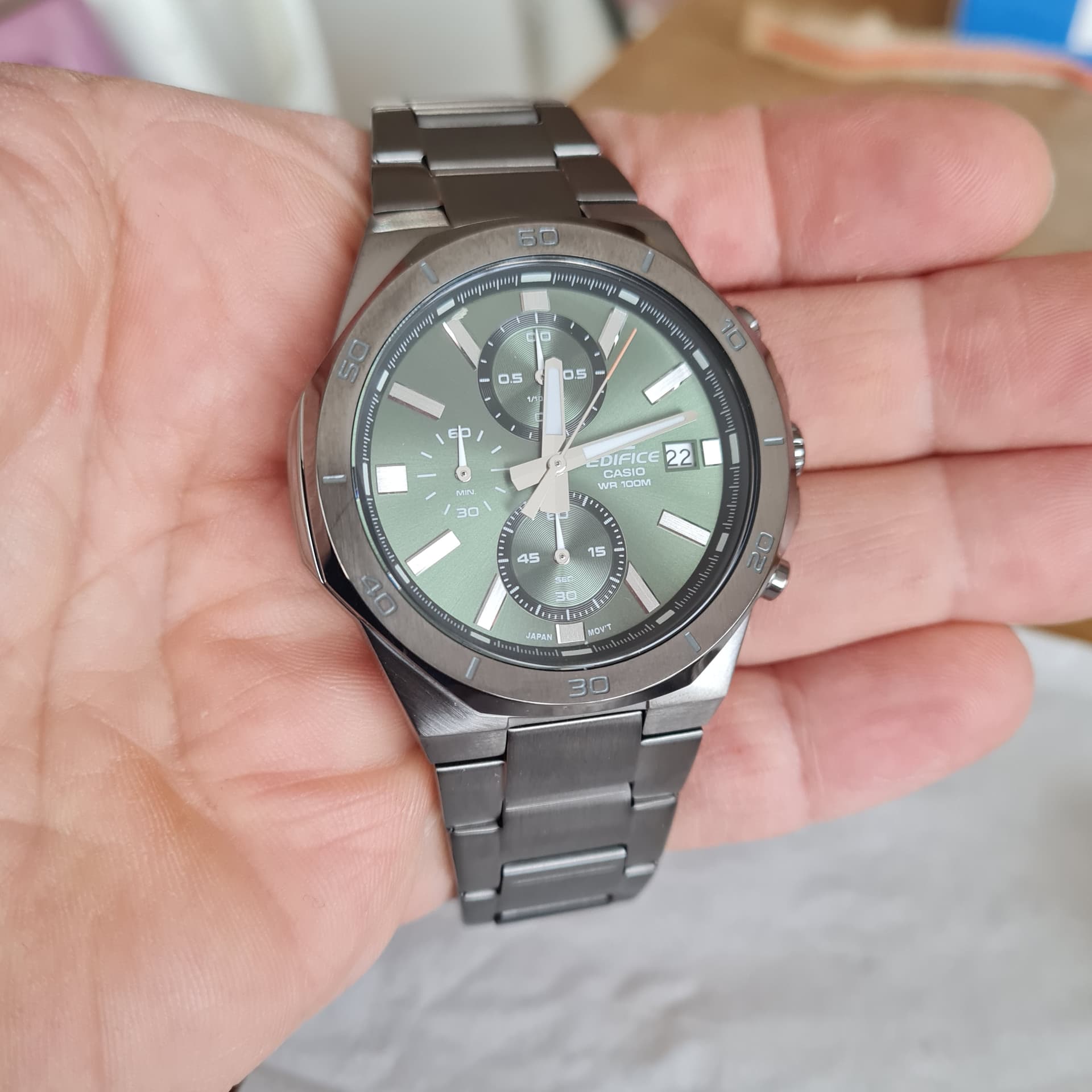 Een dubbele NA, niet bedoeld maar soms komt het zo uit. Volgende week werk ik 25 jaar voor BV Nederland, 18 jaar Defensie en 7 jaar bij Binnenlandse Zaken als chauffeur. Ik vind dat wel een beloning waard ! Dus hup, op zoek naar wat nieuws. Het moest een sportief/stoer horloge zijn en dan kom je meestal uit bij Edifice en zo ook nu. Een 4-tal horloges bekeken en vergeleken en de winnaar was de EFV-640DC-3A. Vanmorgen kwam hij binnen en ik ben er blij mee !