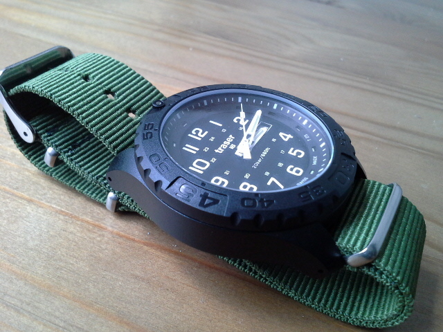 Ik zou denken aan zand- of olijfkleurig of misschien wel legerachtig (geen camouflage, dat leidt weer teveel af van het horloge zelf). Of iets met een rode streep. Met nato’s en zulu’s kun je eindeloos combineren en kom je vaak tot verrassende combi’s die dan ineens geweldig staan. Succes met combineren en kiezen!