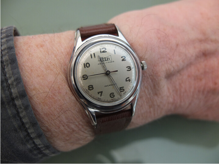 Een aantrekkelijk vintage horloge dus. Dat kleine formaat hindert mij overigens niet zo. Ook de vintage ‘mini gentlemen’ in mijn verzameling worden met plezier regelmatig door mij gedragen.