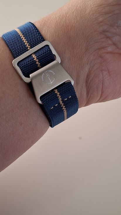 Met zijn 39mm erg comfortabel op mijn 16,5-17cm pols. Datum met snelverstelling, automaat met yema inhouse movement en vet cool blauw met gele accenten die het horloge nog meer doen opleven. Echt een heel mooi horloge, dikke blij mee. We zijn er nog steeds niet over uit welke we nu de mooiste van de 3 vinden.