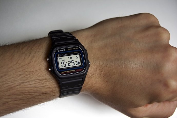 Voor mij geen plastic (of rubber, of nylon) om de pols, ik heb wel een digitale Casio, maar dan wel heel anders…
