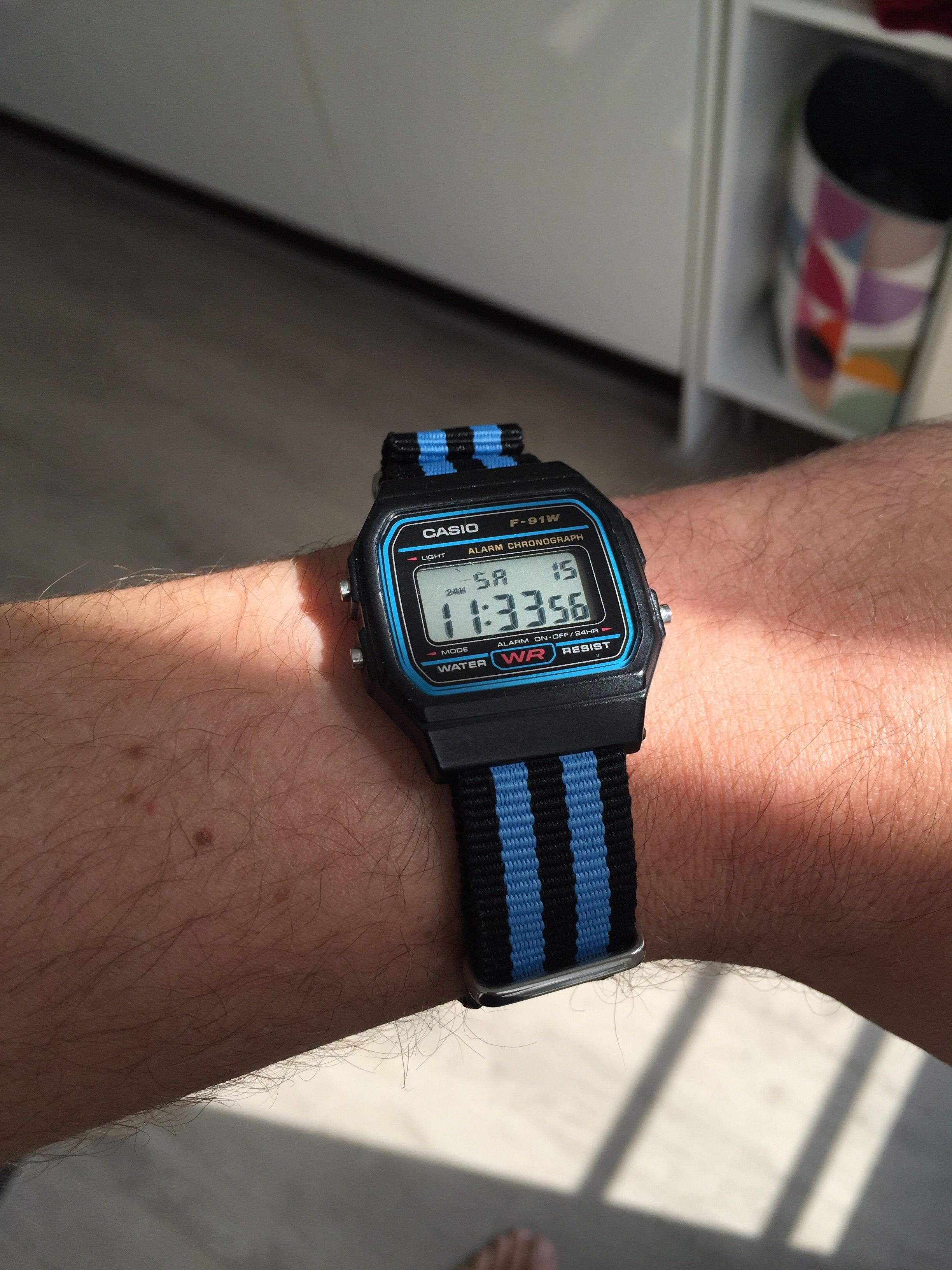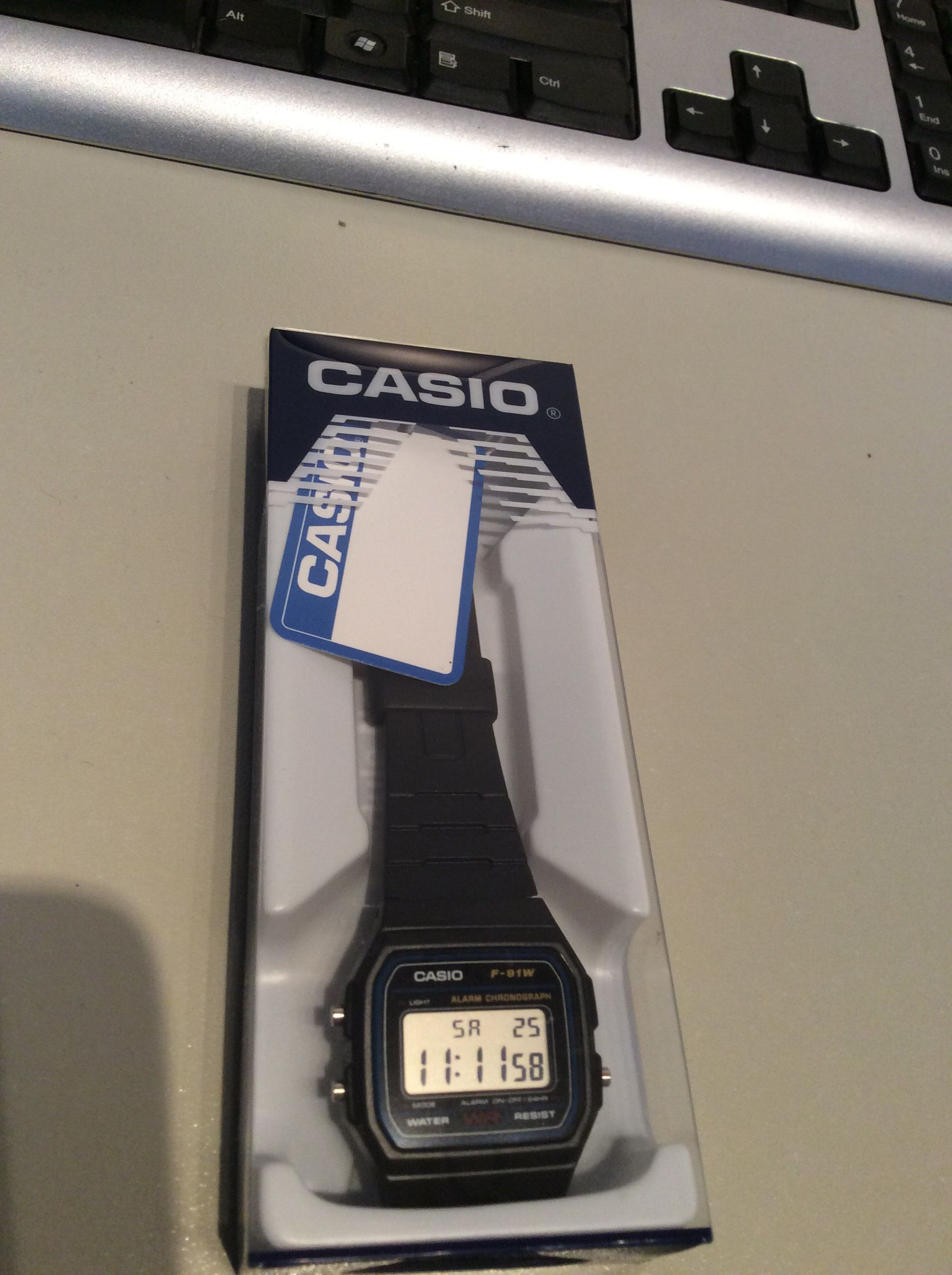 Zonder gekheid vind ik dit een ontzettend gaaf horloge. De prijs speelt overigens zeker mee. Dit is het ultieme bewijs dat onze favoriete horloges pure luxeartikelen zijn: functioneel gezien ben je voor een tientje echt klaar (plus: accurater en meer ‘complicaties’ dan elk ander horloge dat ik heb). Ook is het vanuit industrieel ontwerpoogpunt een waar icoon: http://www.iconeye.com/opinion/icon-of-the-month/item/9473-casio-f-91w