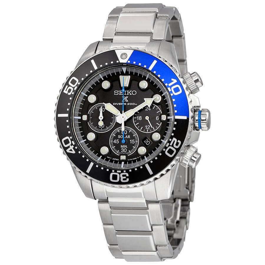 De Seiko Speedtimer SSC813P1 of SSC819P1. 680,- Euro listprijs, 39x13mm groot, saffierglas, solar uurwerk, standaard lugs voor bandenwissel, discreet uiterlijk en een gedegen quartz chronograaf.