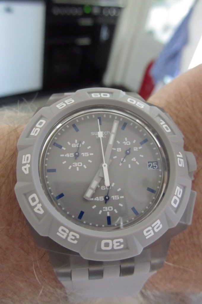 Vandaag trouwens, toch weer stukje jeugdsentiment, weer een Swatch gekocht; als āklushorlogeā. Ik vind 'm cool en voor zo weinig geld een Zwiterse chronograaf met stoere diverlook⦠; )