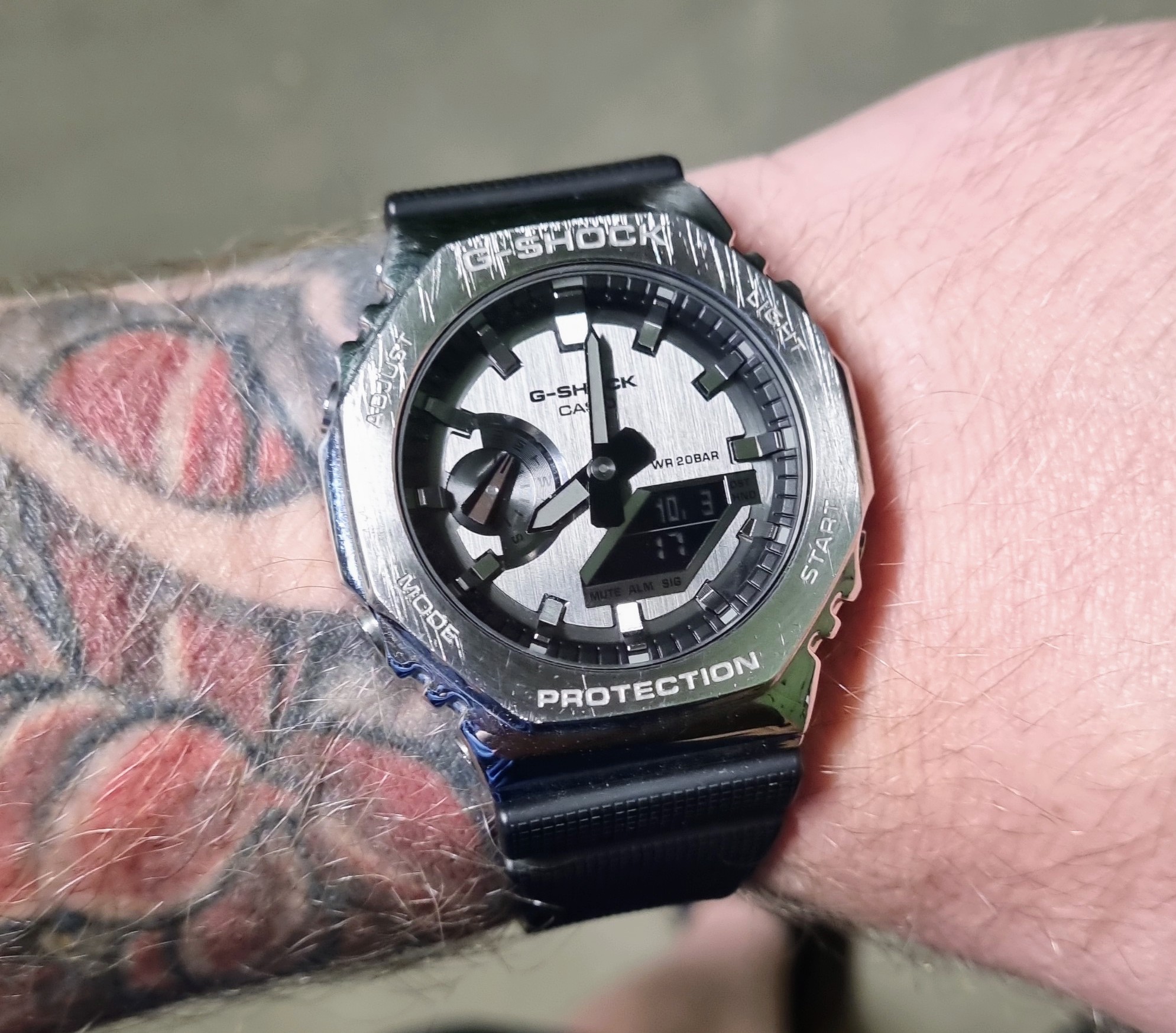 Horloges zijn van staal of titanium. En ze zijn analoog. En ze zijn niet groot. Dus nee, die zwarte rubberen hockeypuck zal er niet gauw in komen, vrees ik.