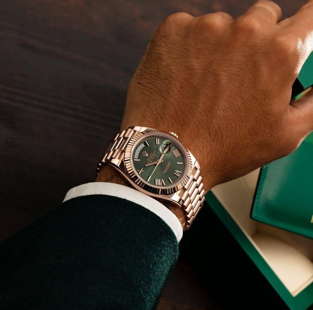 Dan kom ik ergens bij Rolex uit als realistische eindbaas. Een gouden daydate en als het voor minder moet een rootbeer