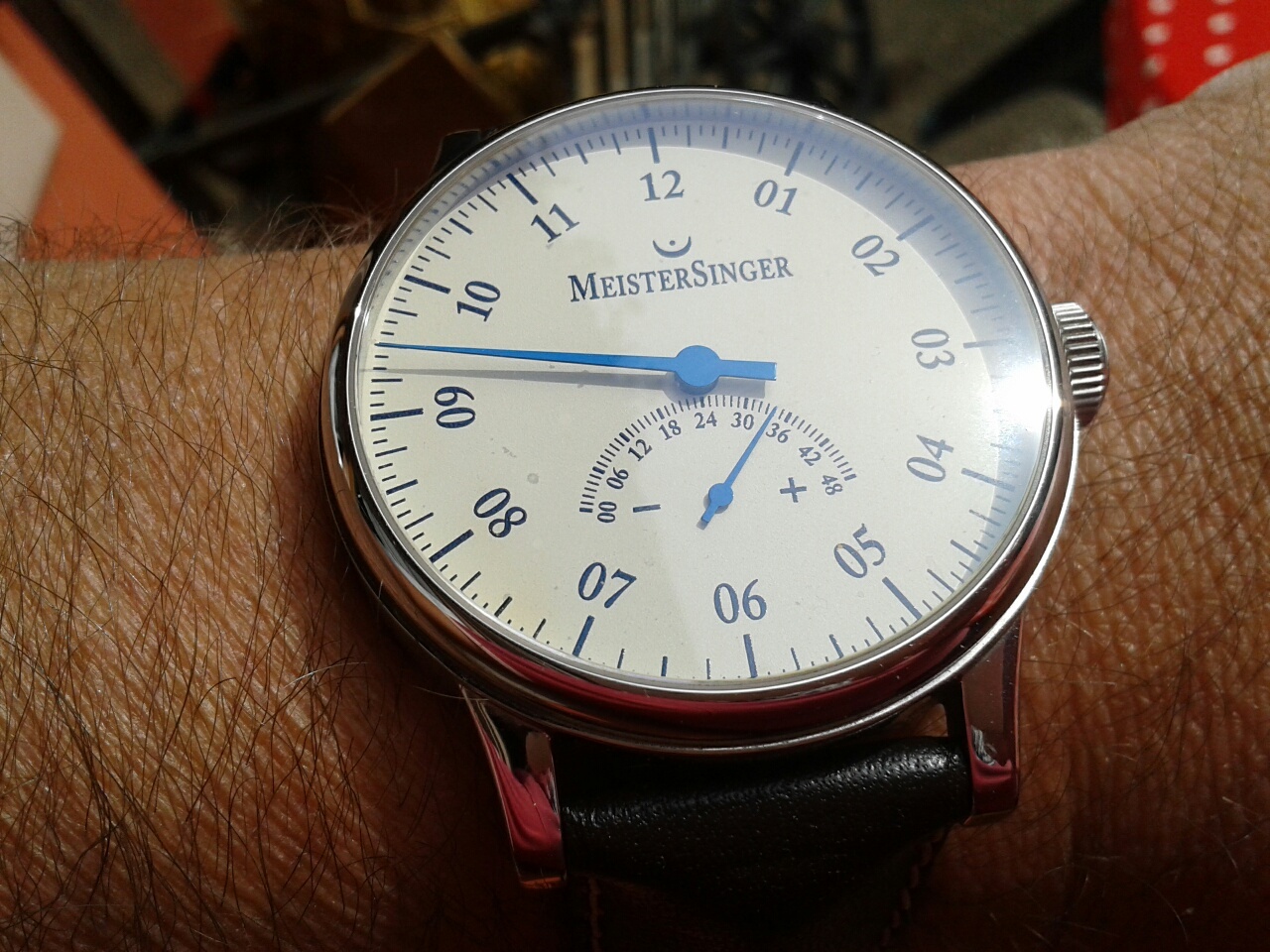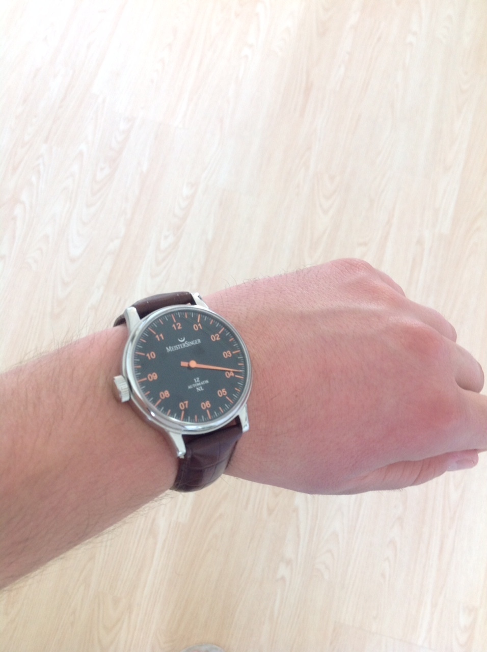 Mooie klok! Meistersingers zijn goede en betrouwbare horloges. Heb zelf een Meistersinger Singular, veel mensen vragen ernaar als ik hem draag. Vooral over hoe je de tijd dan afleest Veel plezier ervan!