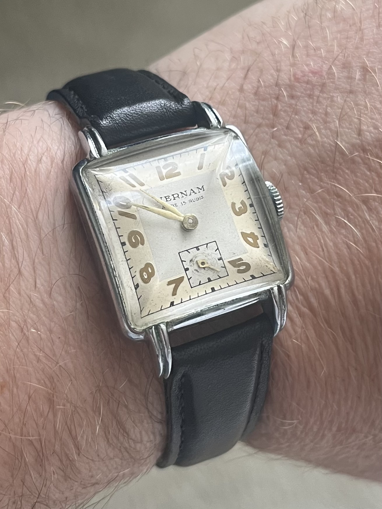 Als het horloge al 75 jaar geen service heeft gehad zal er best veel vuil en slijpsel in het uurwerk zitten.