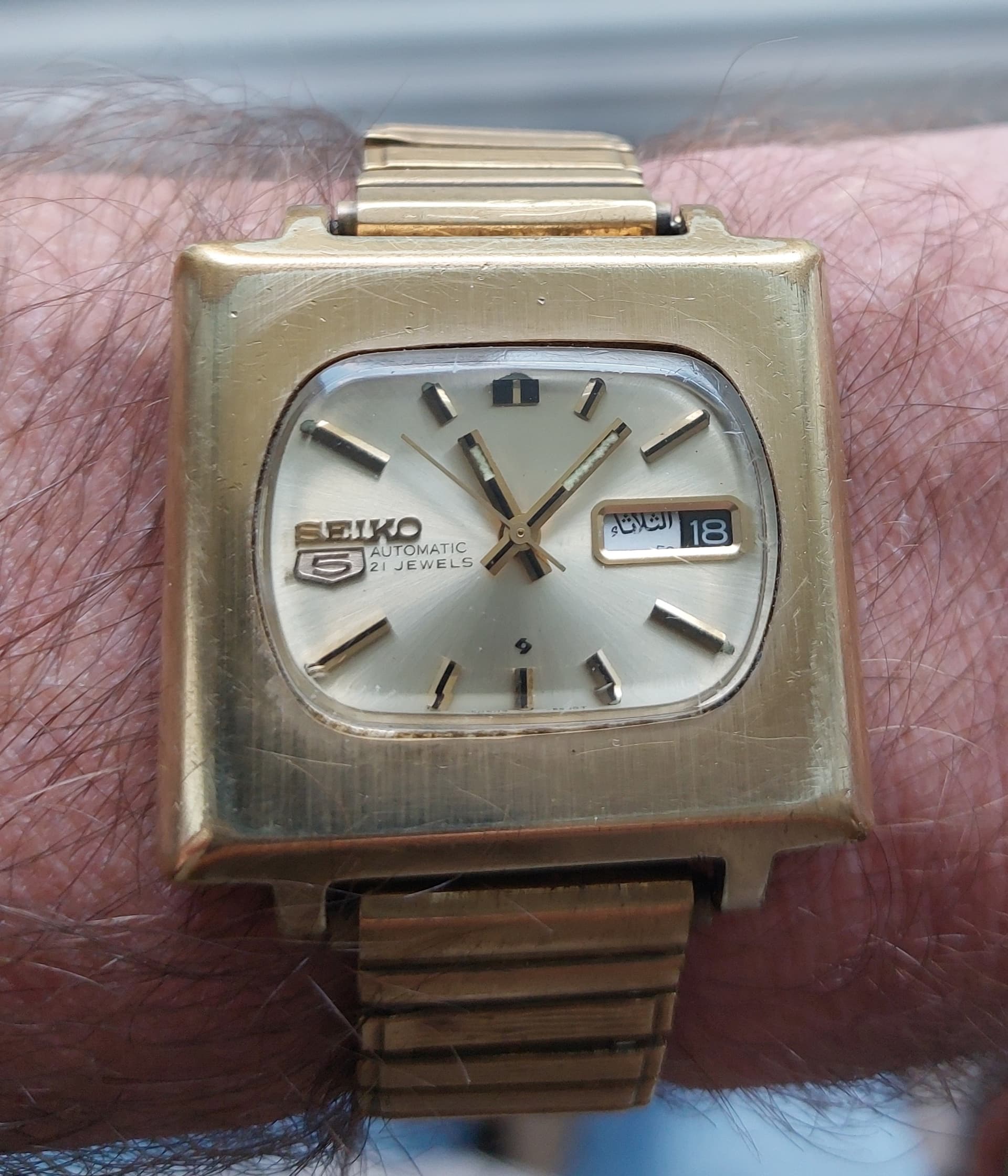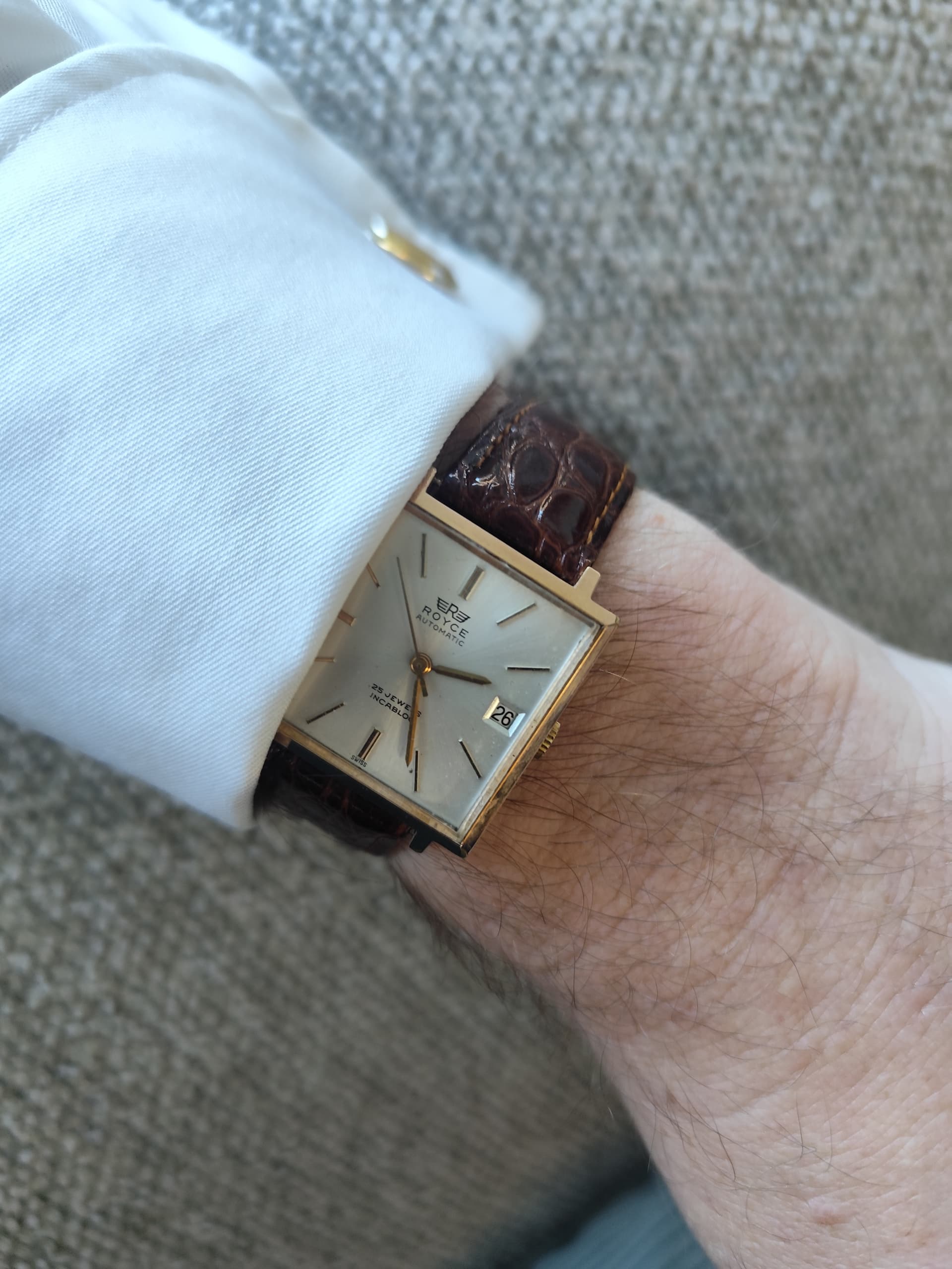 NA: Dit is vierkant en toch ook niet. Een aparte kastvorm. Het merk Alberto stelt in de horologische geschiedenis niets voor, maar het is de naam die mijn vader vaak hanteerde als hij zich voorstelde. Omdat ik de kast cool vond en laatst ook een horloge met mijn moeders naam erop had gescoord, kon ik niet anders dan toehappen. Die van mijn moeder was 3x zo duur: maar liefst 15 euro.