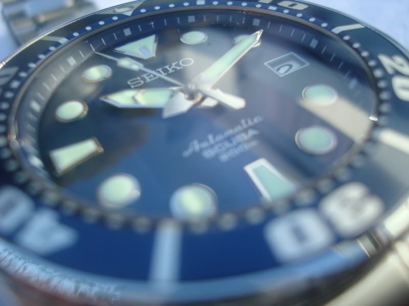 Ik had me voorgenomen het dit jaar wat kalmer aan te doen. In het verleden kocht ik zo lukraak maar wat aan op de baai etc., vaak was de spanning van het wachten leuker dan het horloge zelf… ik heb dan ook diverse klokken liggen die nooit polstijd krijgen maar ook de moeite van het verkopen niet waard zijn… ach, misschien wel aardige knutselprojecten voor later, ze eten immers geen brood en bederven doen ze ook niet. Dit jaar heb ik het wat aankopen betreft anders gedaan. Uiteraard de limited 2008 maar van de zomer was daar ook de inkoopactie voor de Seiko Sumo. Naast de horlogeforum ltd’s ben ik ook wel van de duikers. Ik heb er diverse en vond de Sumo een fraaie om erbij te doen… Na een hoop omzwervingen kwam-ie vorige week dan eindelijk aan, door Robbie voorzien van saffier glas… Tsjee, wat een pracht van een klok… mooi, groot, stevig, zwaar, een fraaie band een hele mooi blauwe wijzerplaat, enfin kijk zelf maar :
