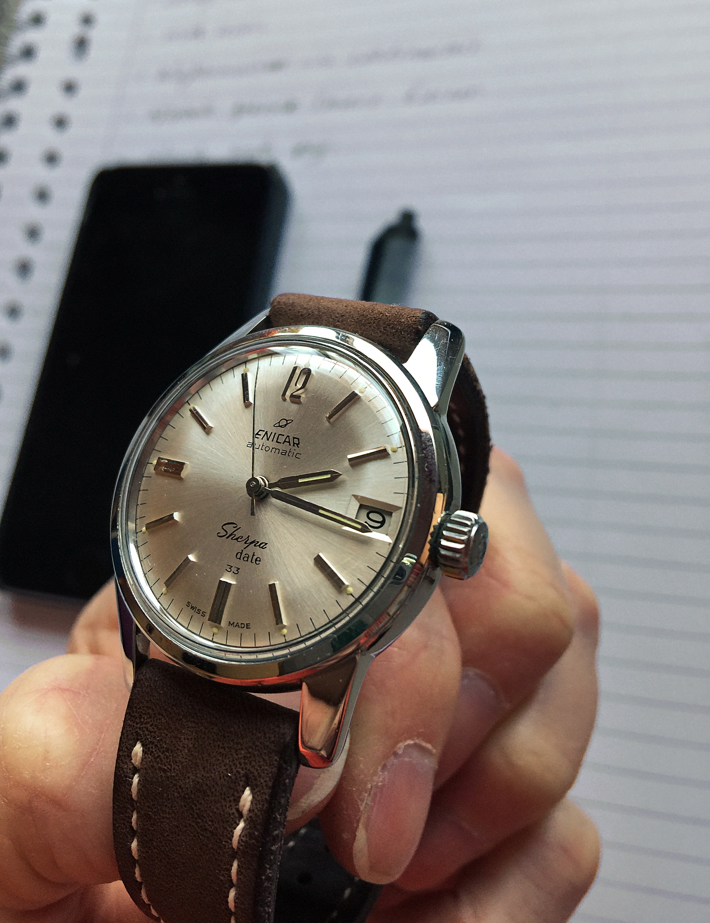 Kijk ook eens in het speciale Enicar topic in de Vintage hoek, post 114 lijkt veel op die van jou (verschillen: kleur wijzerplaat en andere uurmarkers)