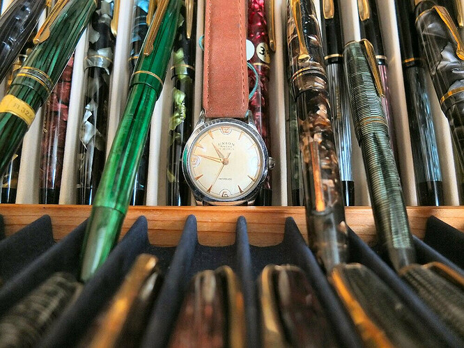 Mijn (op dat moment nog enige en eerste) Union tussen een deel van mijn collectie Union vulpennen