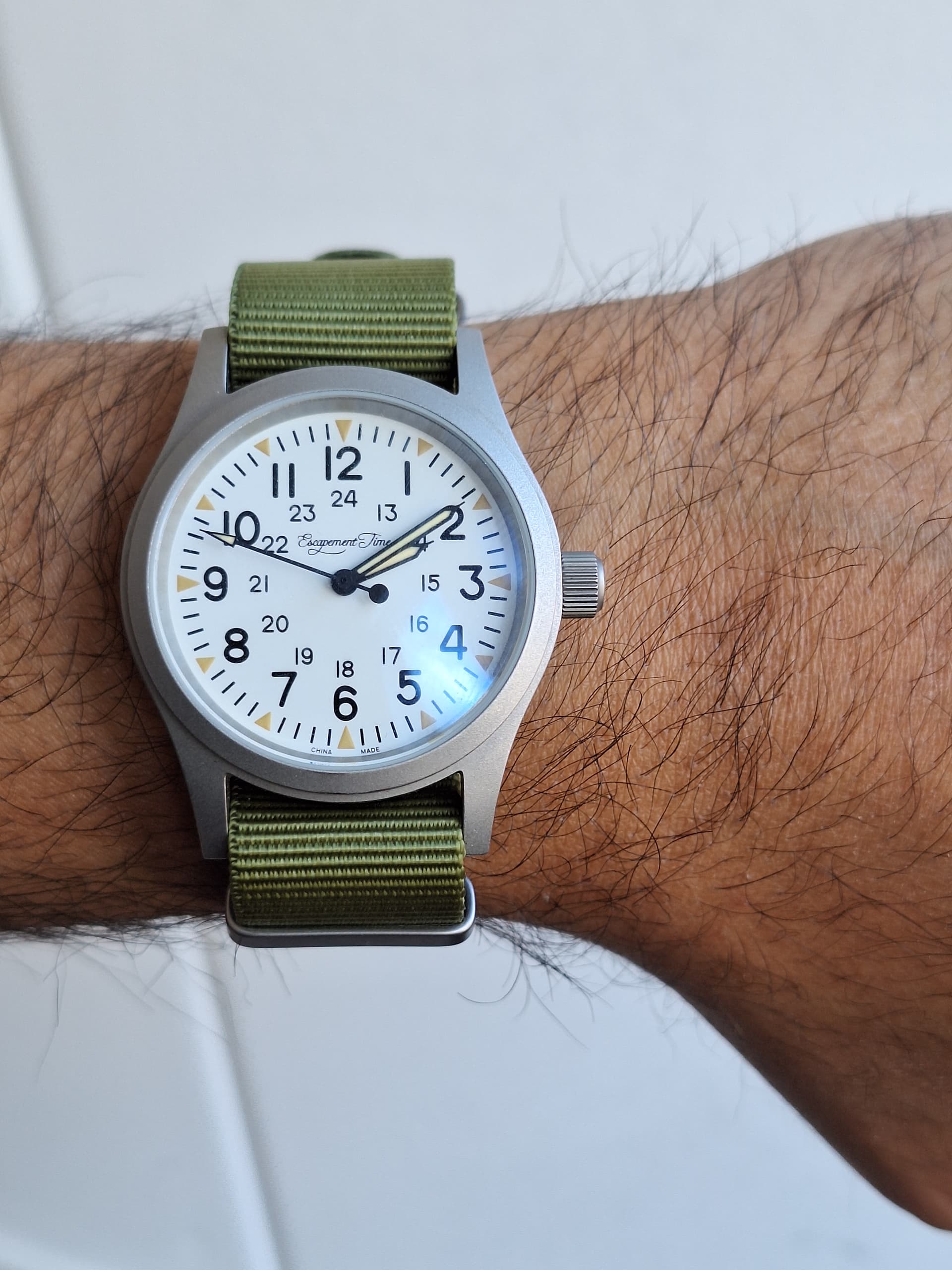 Voor de liefhebbers, een echte toolwatch met vh31 movement, en… WEL een screwdown crown