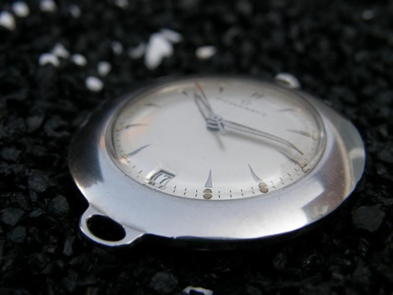 Denk je dat het zo de fabriek uit is gekomen? Het lijkt mij wellicht een stukje huisvlijt. Een Eterna-matic heeft een automatisch uurwerk, en dit horloge ziet er niet uit als een polshorloge, en om een automatisch uurwerk in een niet polshorloge te stoppen lijkt me vreemd, daarom dat ik denk dat het wellicht huisvlijt is.