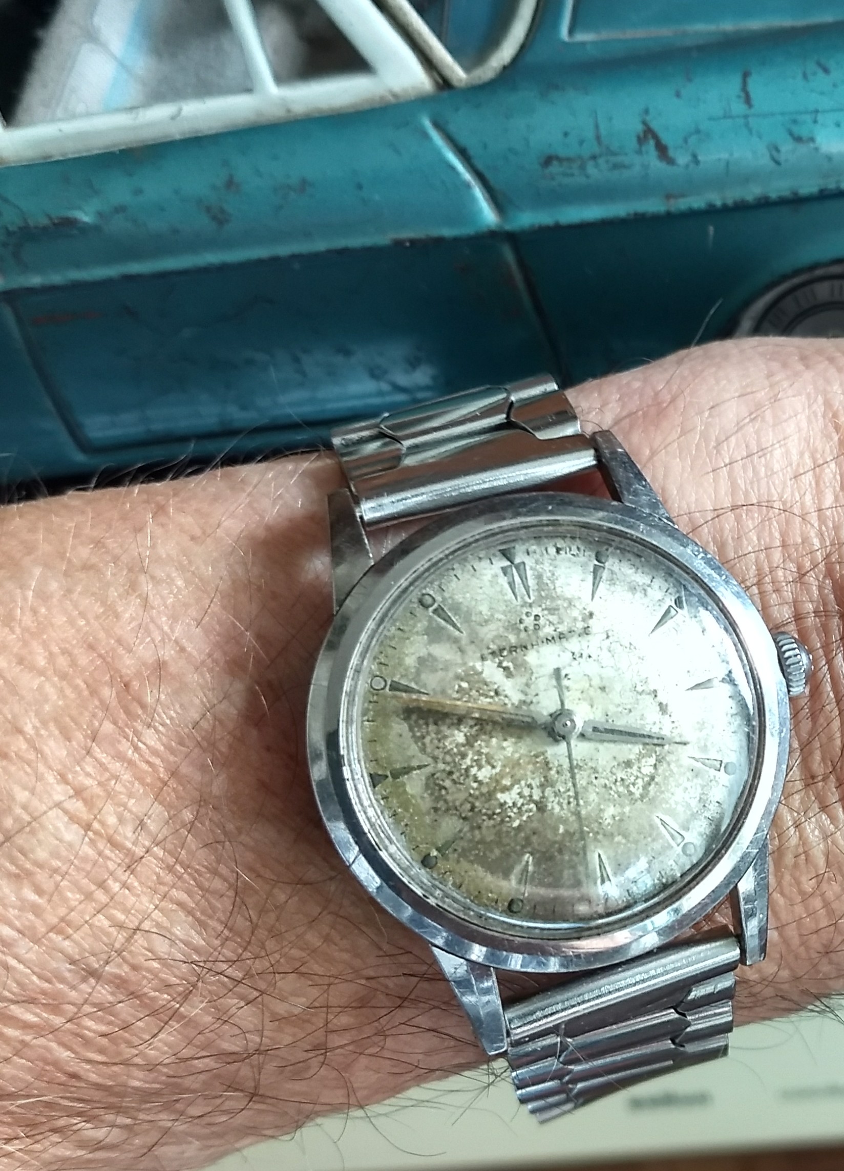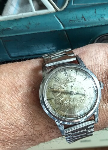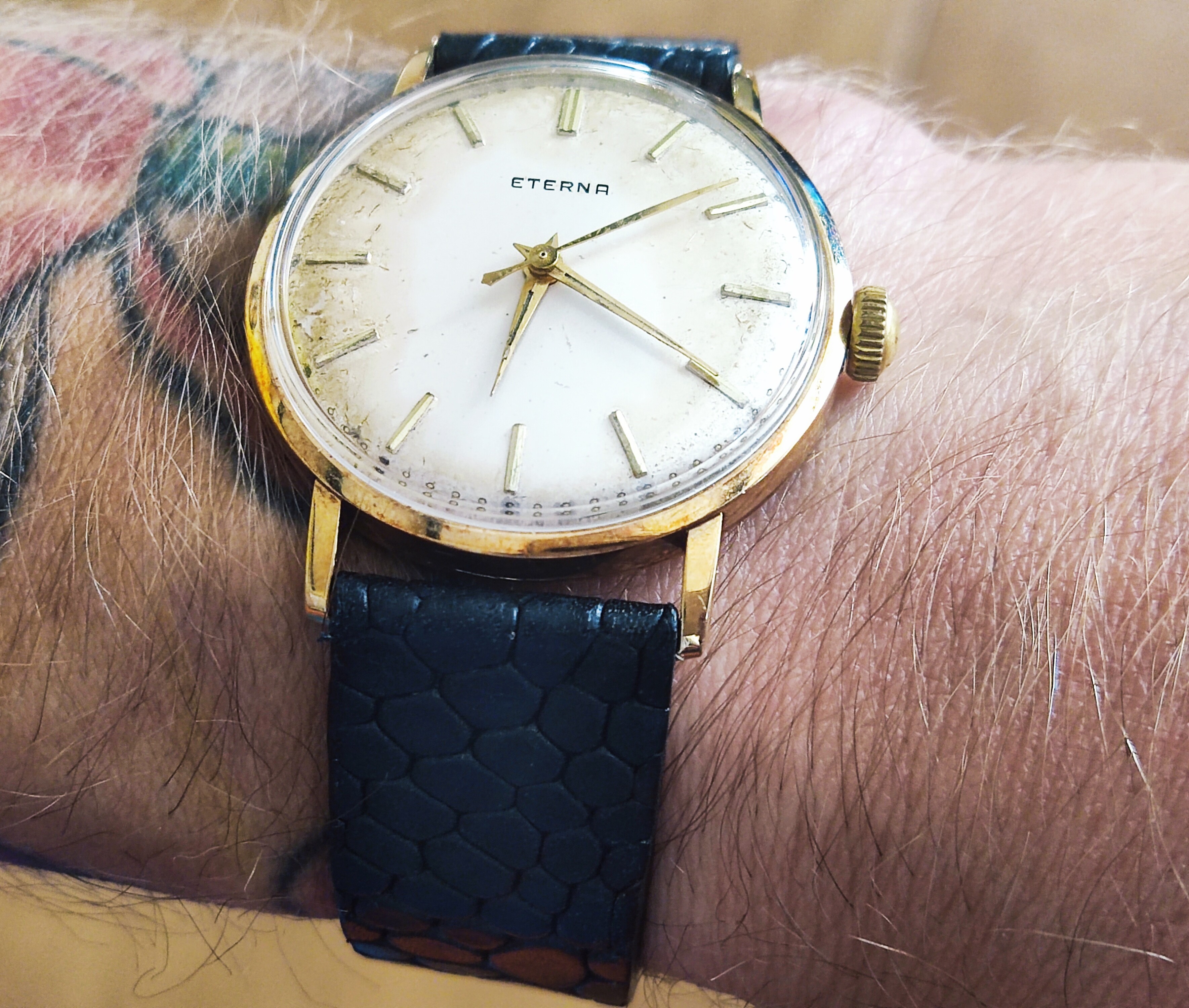 Nou heb ik al best (heel erg veel) wat Eterna’s voorbij zien komen, maar nog nooit deze dial, met of zonder lume, in deze kast. En al helemaal nooit op zo’n GF band. Wie weet meer?