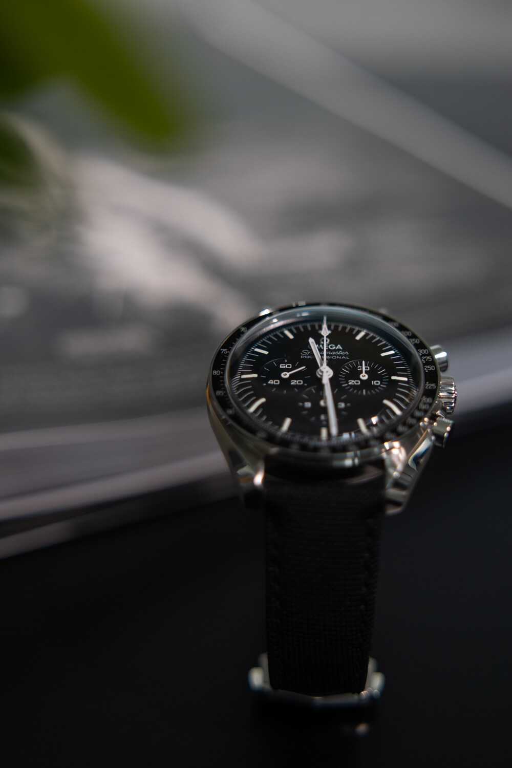 Maarja…was dit dan het horloge dat ik echt zo graag wilde al sinds mijn 16e? Uiteraard niet. Maar…ik begon uiteraard door de Moonswatch meer en meer interesse te krijgen in de échte Omega Moonwatch! En hier vielen letterlijk alle kwartjes op zijn plaats. Zo ben ik al sinds jongs af aan geïnteresseerd in de ruimtevaart. Daarnaast fotografeer ik al meer dan 20 jaar en ben ik ook altijd weg geweest van de foto’s die tijdens de Apollo missies zijn gemaakt. Zo heb ik meerdere fotoboeken over de ruimtevaart (het boek Apollo Remastered is zeker een aanrader) en ik heb zelfs een Limited edition Hasselblad 500 EL/M middenformaat camera (deze camera is speciaal is uitgebracht om 20 jaar Hasselblad in de ruimte te vieren). Met de Omega Speedmaster Professional vielen alle stukjes dus echt op zijn plaats. Dat ik hier niet eerder aan heb gedacht!