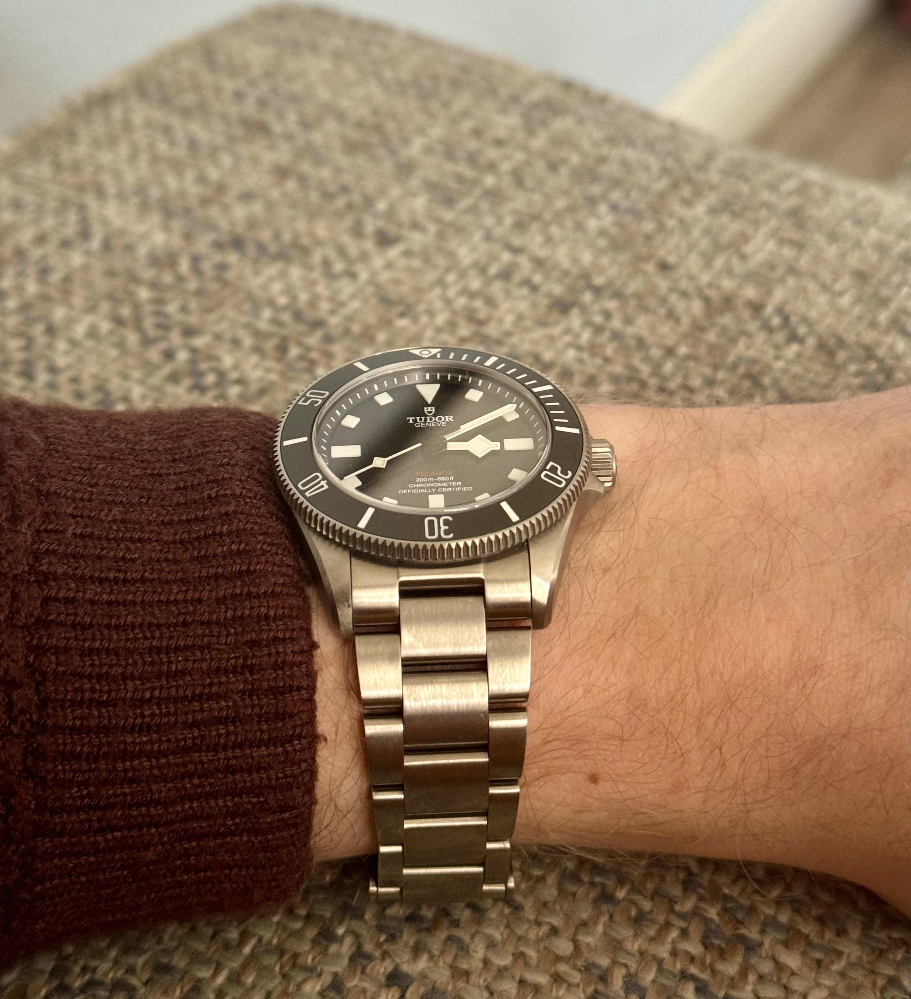 Inmiddels wist ik al wel dat de TG Formula 1 geen optie meer was, ik wilde toch echt een automaat. Na lang twijfelen tussen in eerste instantie een Tudor Black Bay 58 rood/rood en een Pelagos 39 mm, heb ik uiteindelijk een afspraak gemaakt bij de AD om de Tudor Pelagos 39 mm te bekijken. Tijdens dat bezoek was de BB58 rood/rood niet op voorraad (achteraf misschien maar goed ook), maar de twijfel sloeg opnieuw toe toen ik de BB58 blauw/blauw zag. Na alles zorgvuldig te hebben afgewogen, heb ik uiteindelijk toch voor de Pelagos gekozen. Tot op de dag van vandaag heb ik daar absoluut geen spijt van, wat een prachtig horloge!