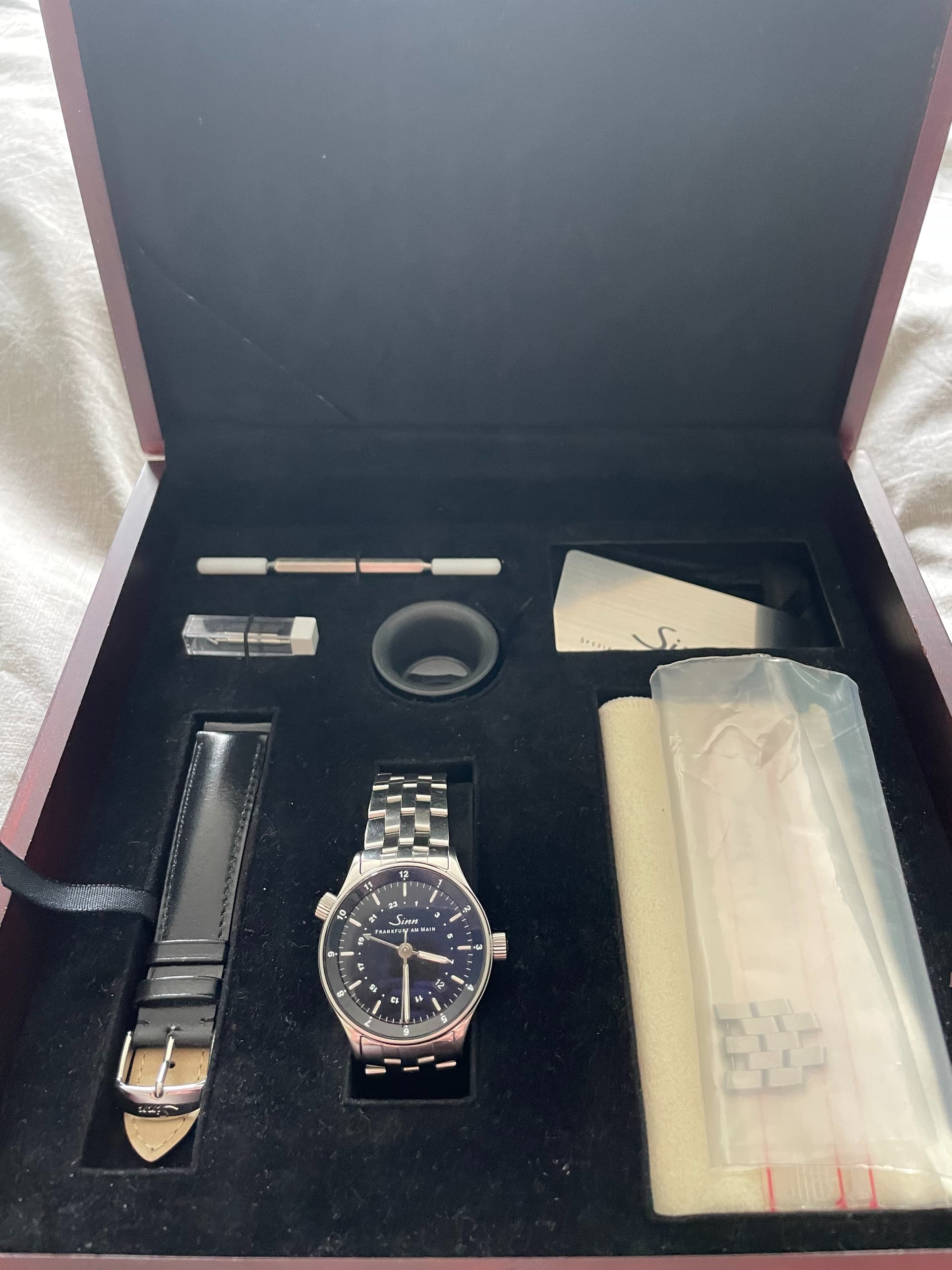 Na de Maen een aantal jaar te hebben gedragen was ik op zoek naar afwisseling. Mijn oog viel al snel op de inktzwarte dial van de Sinn 6060b. Via Chrono een mooi exemplaar uit 2002 gevonden met de bijpassende doos en accessoires. Leuk detail aan dit model is dat je 4 timezone ’s tegelijk kan ‘tracken’. Extreem nutteloos voor mij als kantoor strijder, toch leuk.