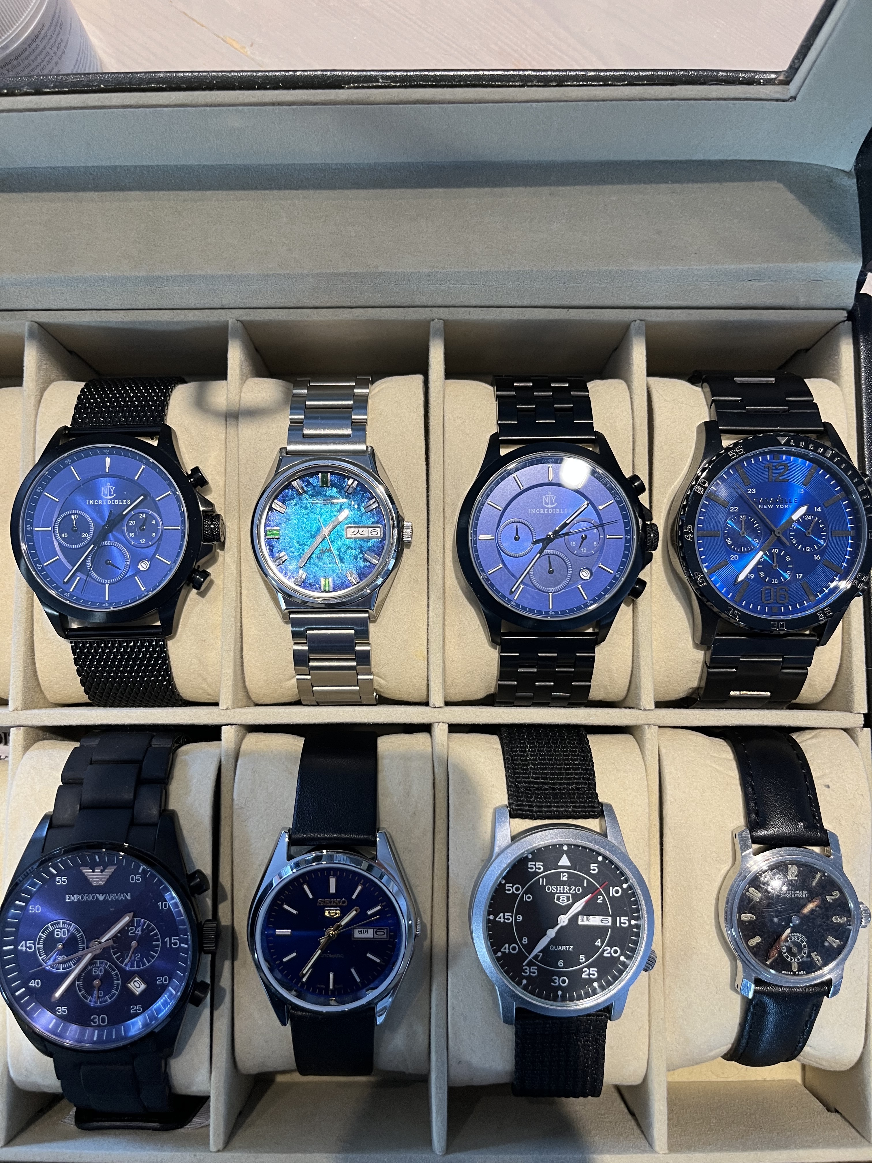 Ik ben met Quartz begonnen een paar jaar terug, New York Incredibles, Armani, Caravelle Bulova en Seiko.