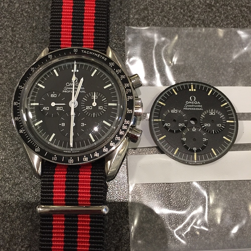 Ik ben zeker geen expert, maar weet je zeker dat je dan geen nieuwe (of refinished) wijzerplaat hebt? Jouw wijzerplaat lijkt me meer een van na 1989. Vooral gelet op de schrijfwijze van Speedmaster (De S is bij jou wat boller en het lusje van de R steekt bij de oudere modellen uit onder de regel).