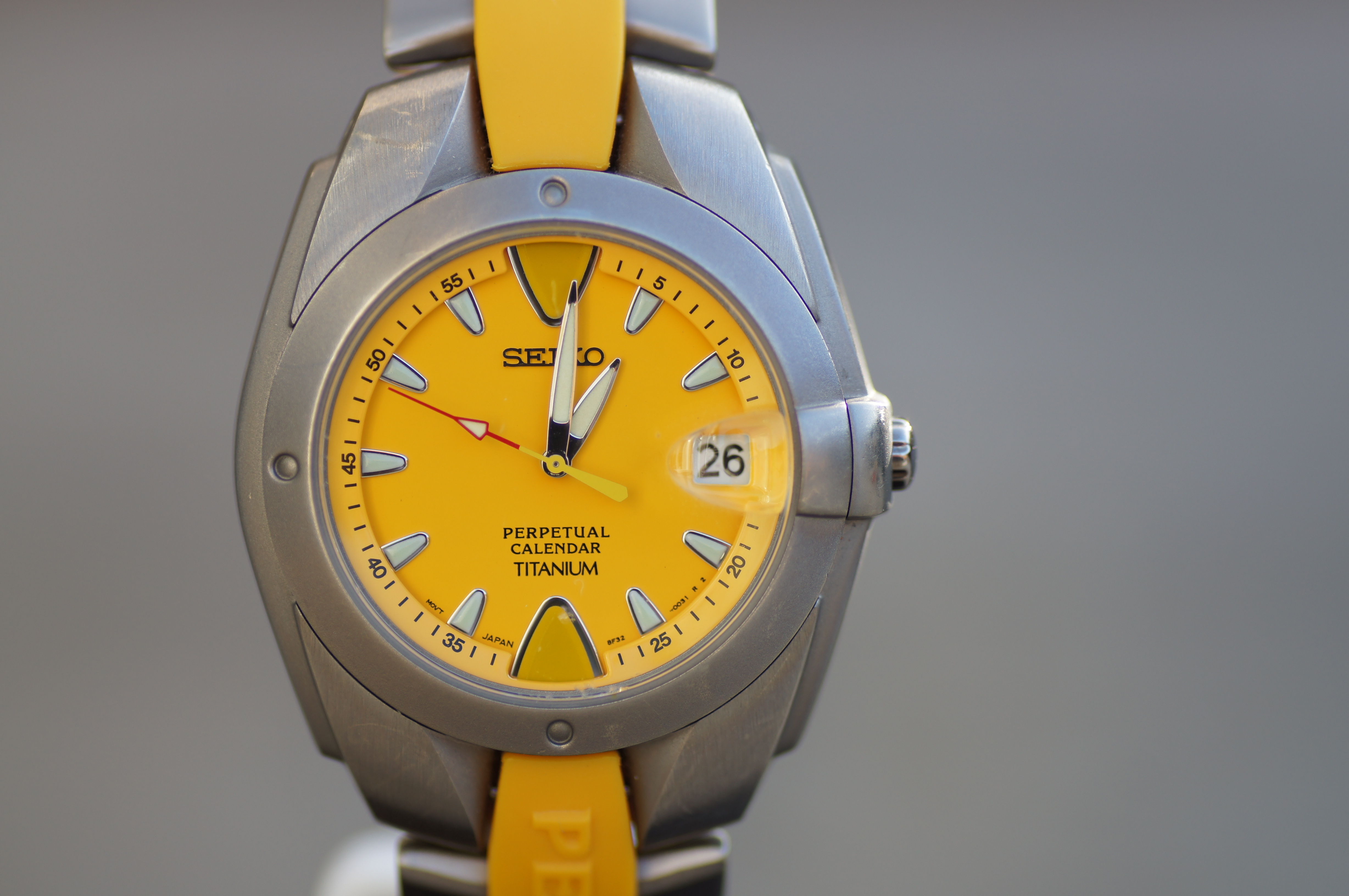 Welkom, Fred! En nog een Seikofan. Daar kun je er niet genoeg van hebben! Die gele had ik nog nooit gezien. Is daar niet een nieuw uurwerk voor te vinden? En ik heb zo’n vermoeden dat jij niet zo houdt van datum verzetten?