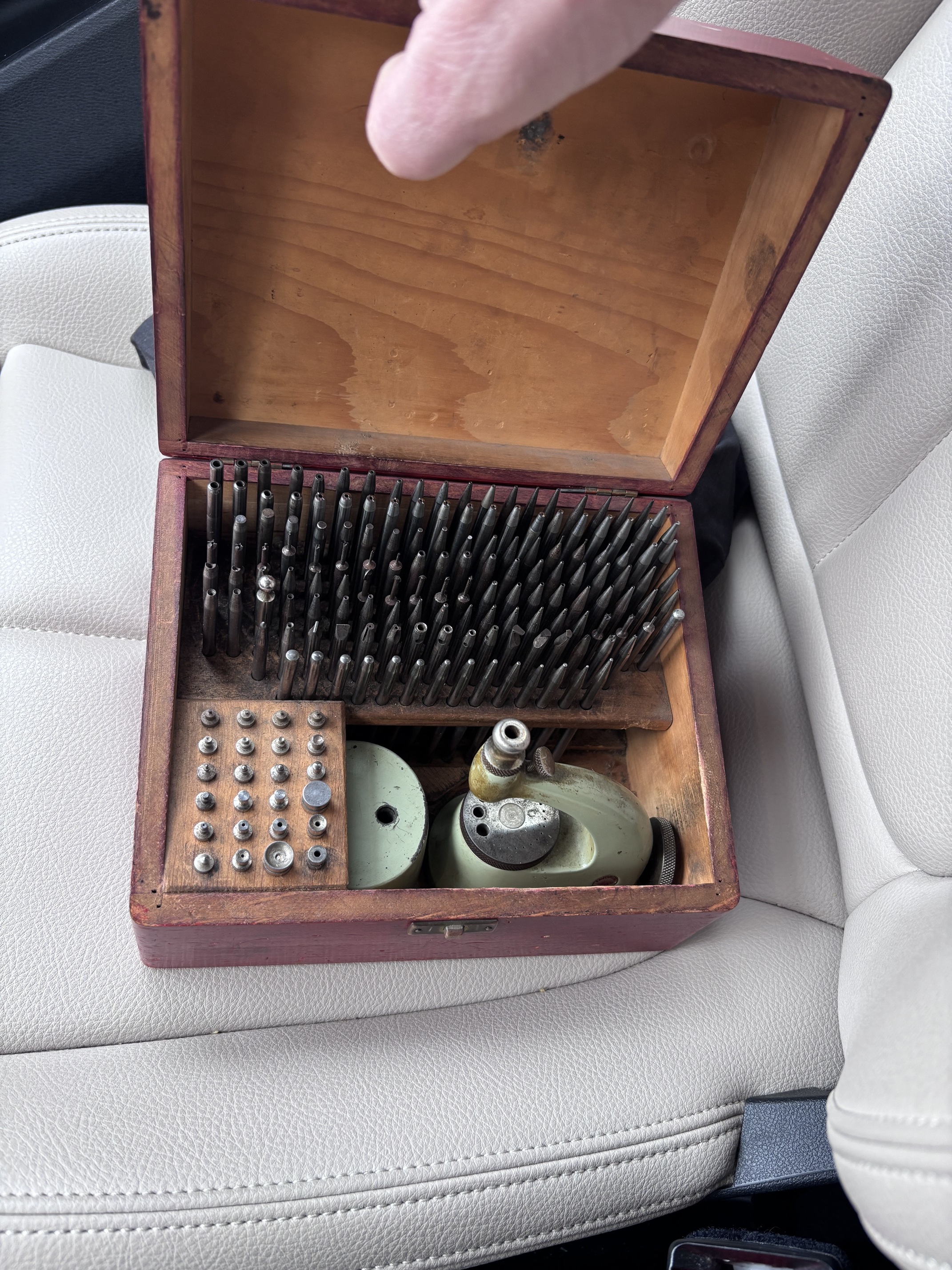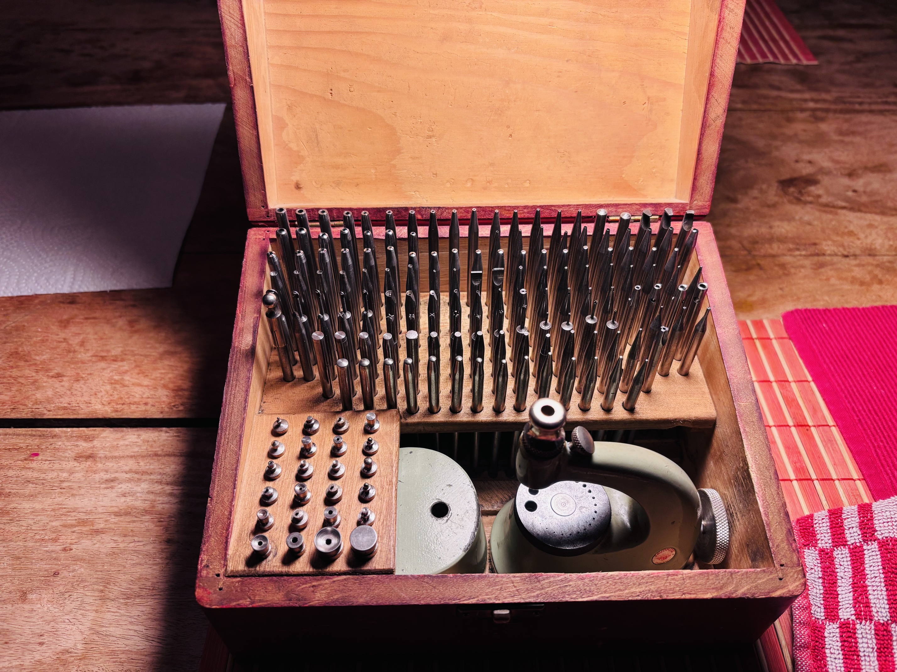 Nu dat ik steeds meer verzeild raak in de wereld van horloge maker. Was de eerst logische volgende stap een ponsen set. Aka: triebniet, staking set enzovoorts.