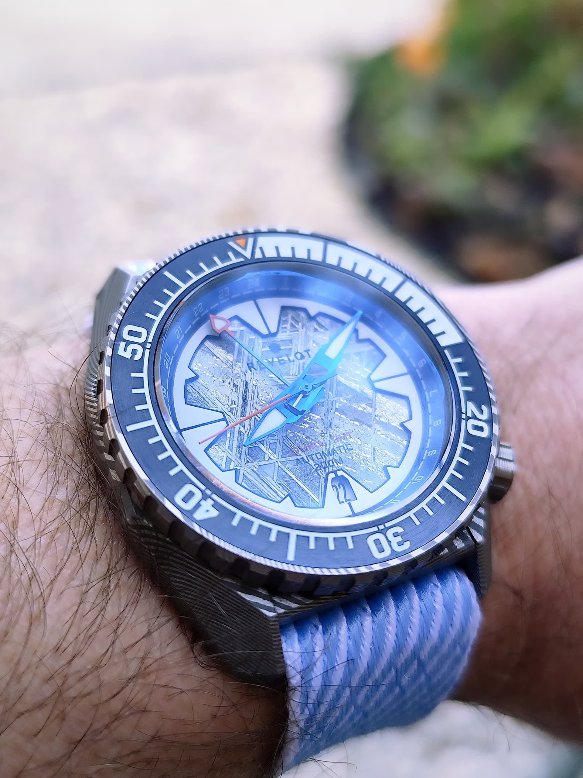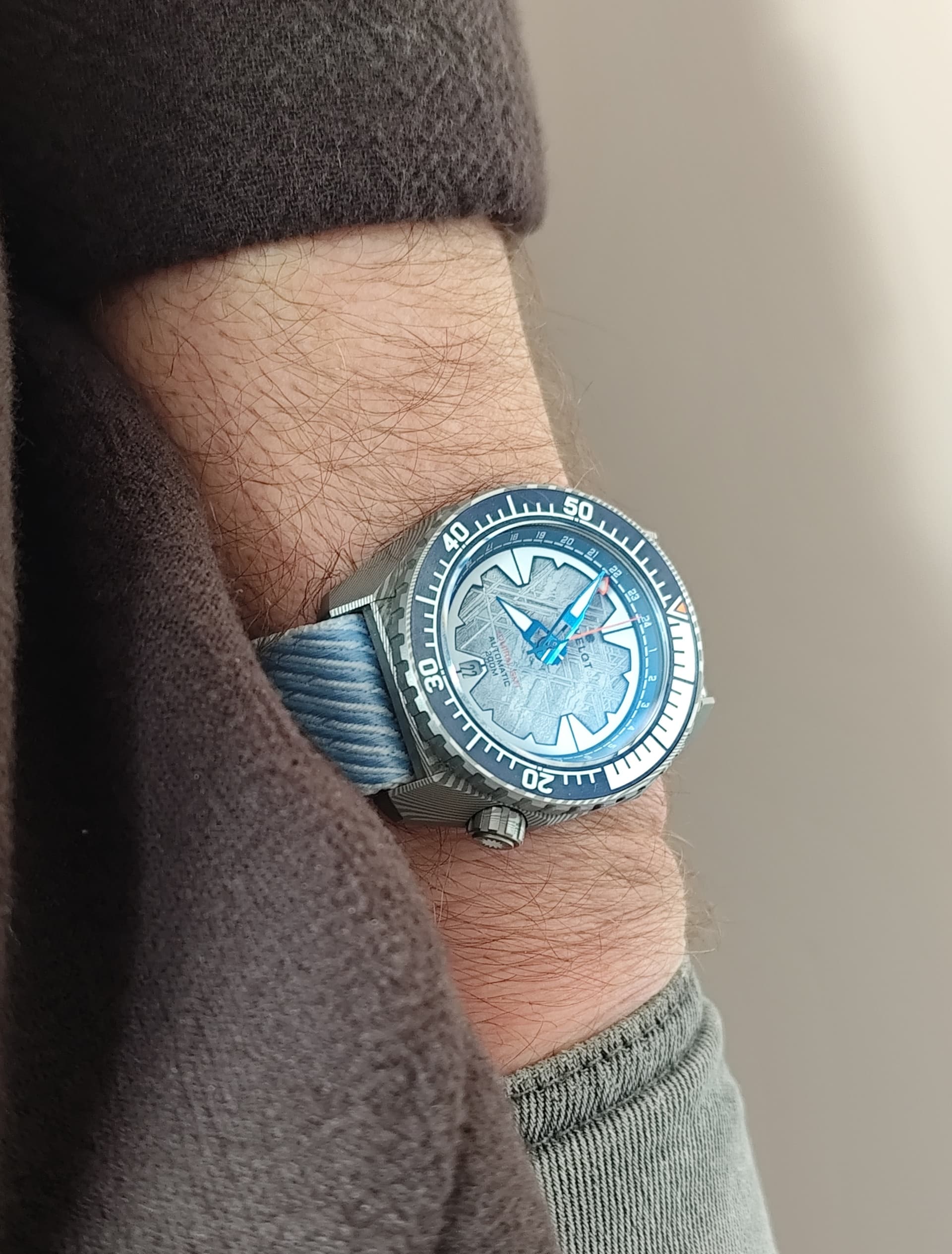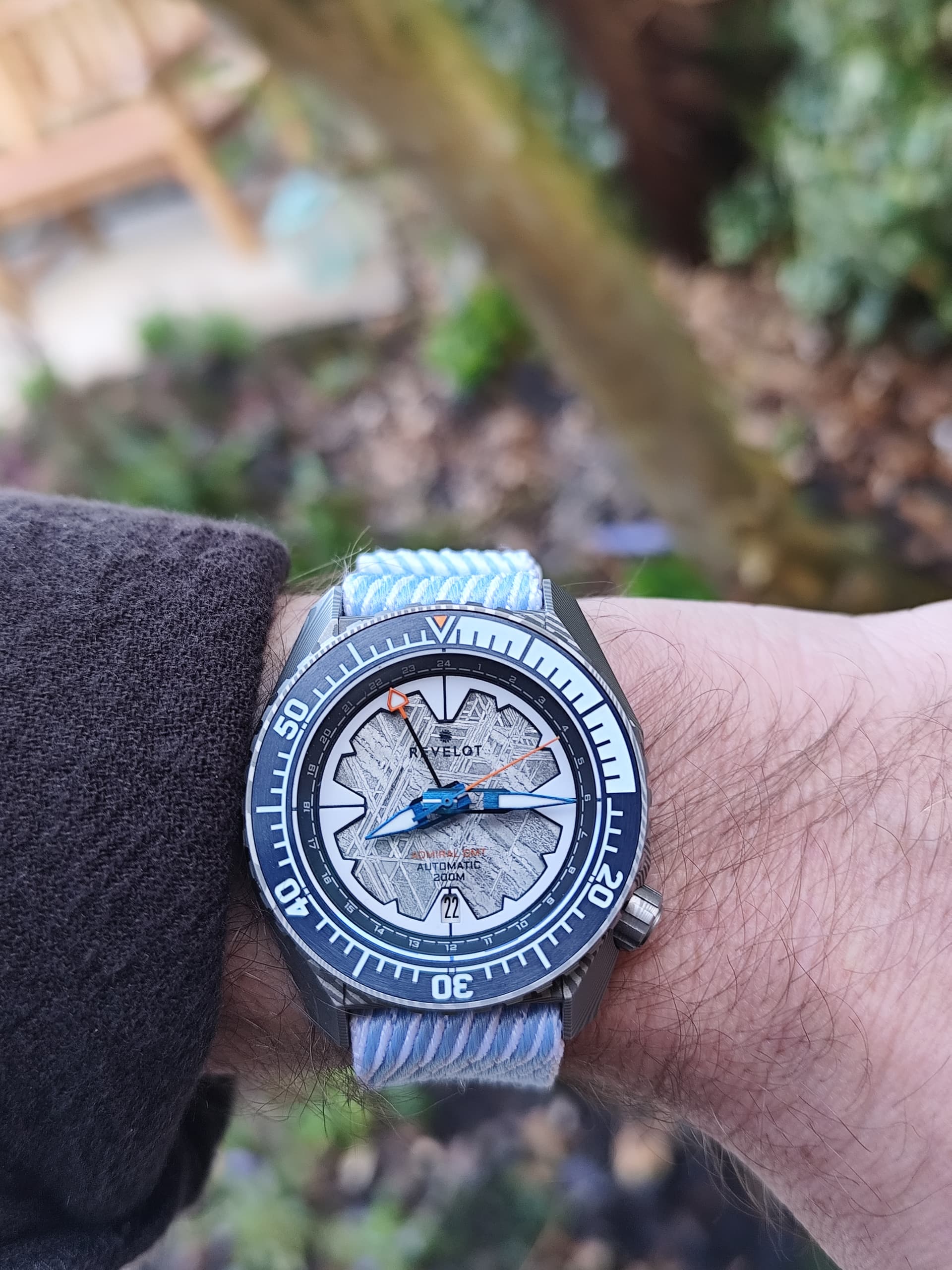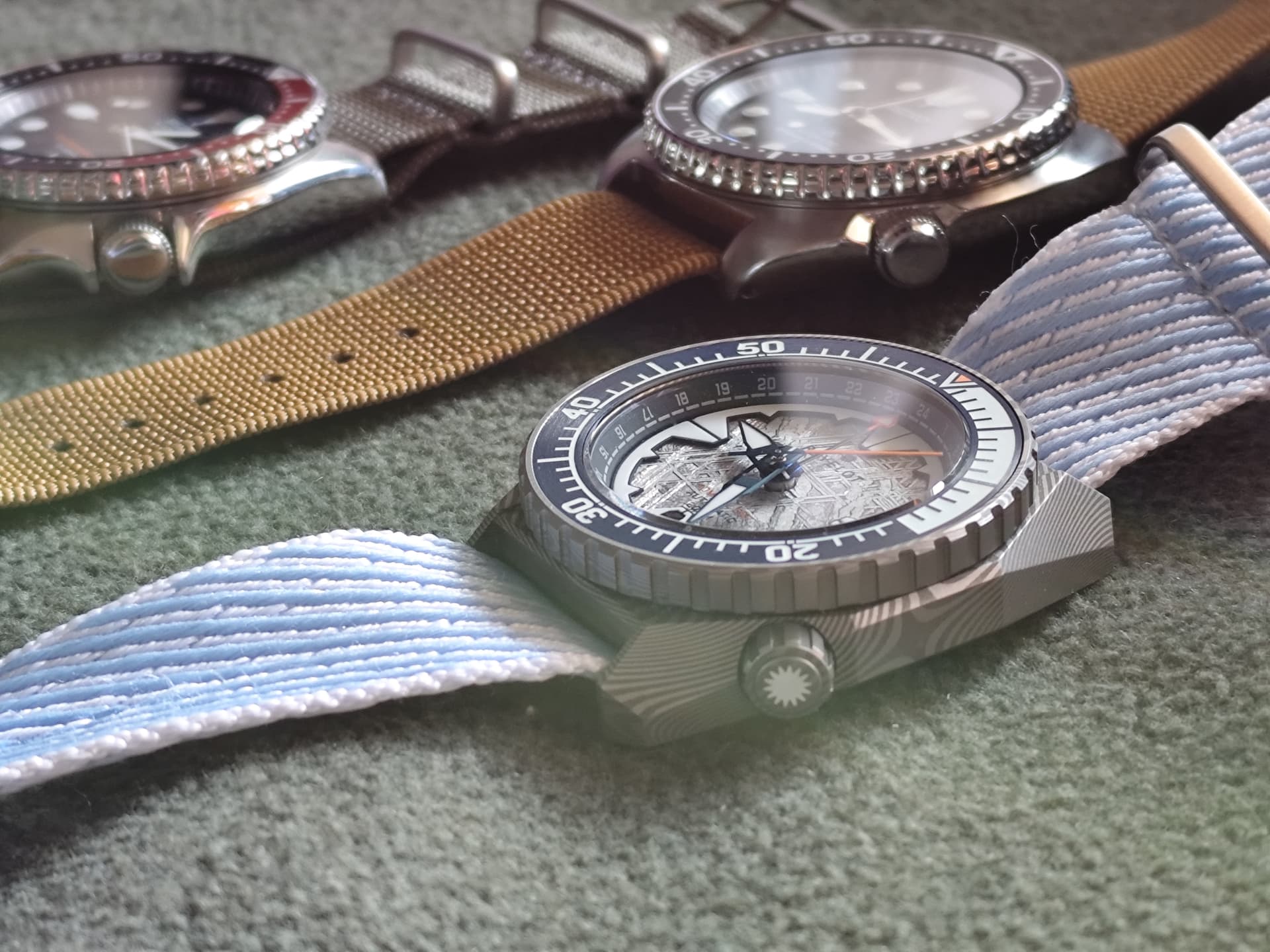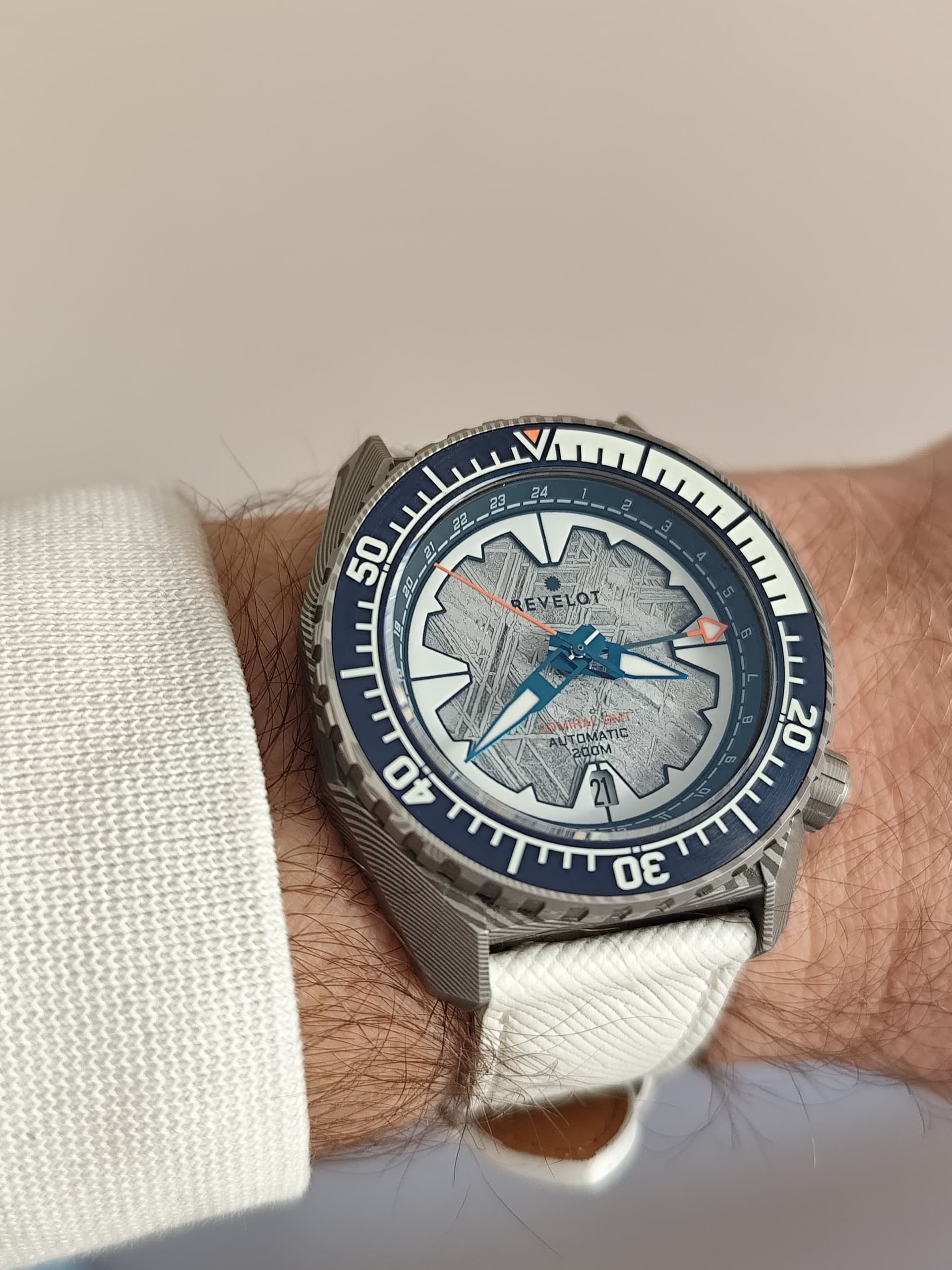 De lugs komen wel tot hun recht zo. Maar ik krijg er hetzelfde gevoel bij als een 42mm Pelagos op Nato: de kastrand is net te hoog hiervoor, maar in dit geval heeft Revelot het wel gaaf afgewerkt.