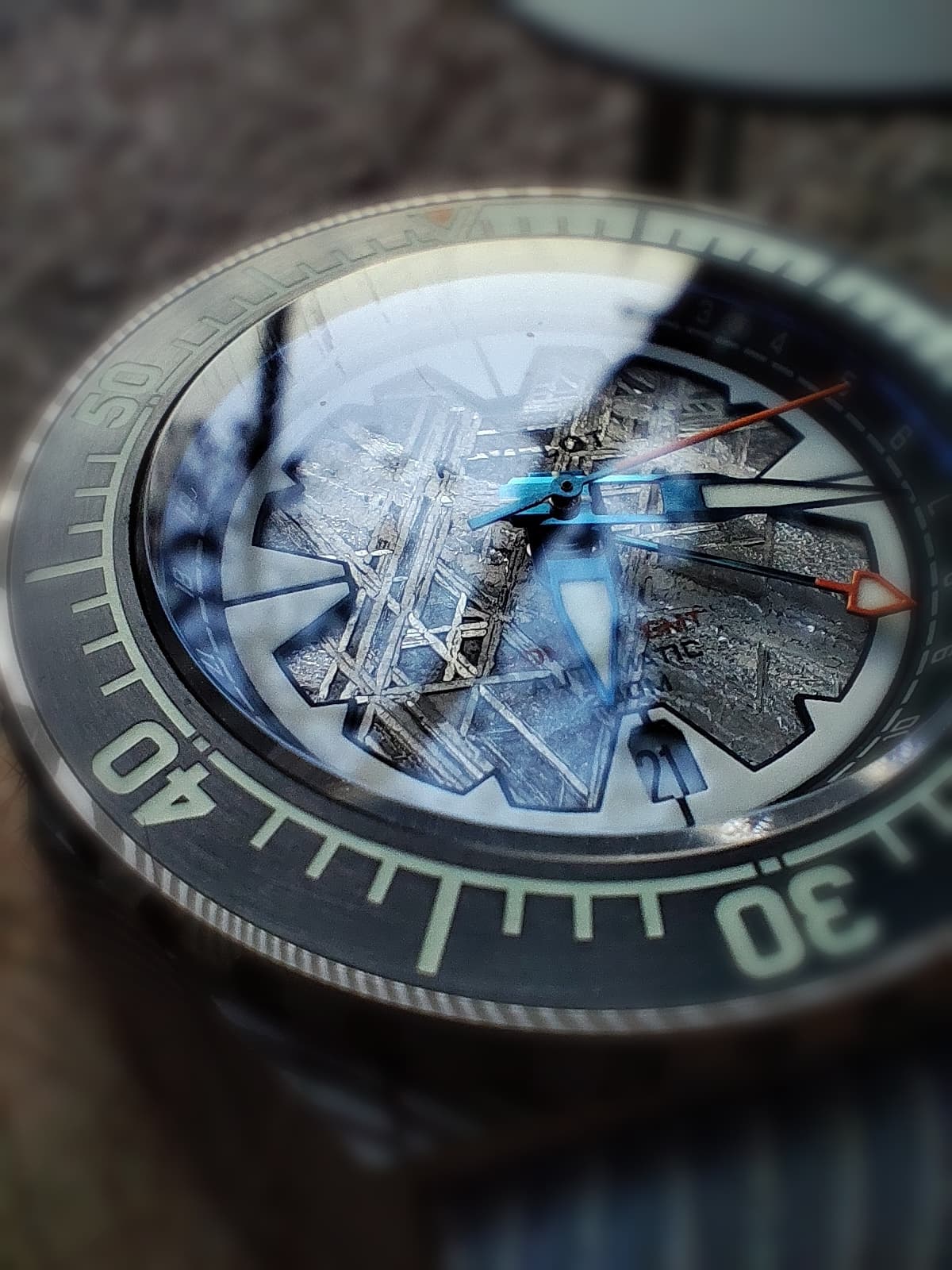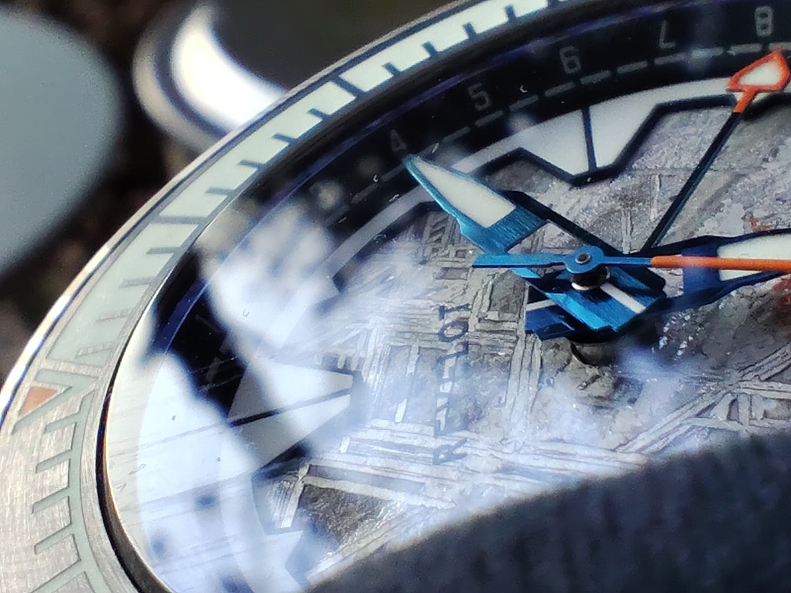 “At the center of the dial lies a set of hands that are chamfered with mirror on the side and brushed on top with a generous dash of Super-Luminova (depending on variant)…” - Revelot website
