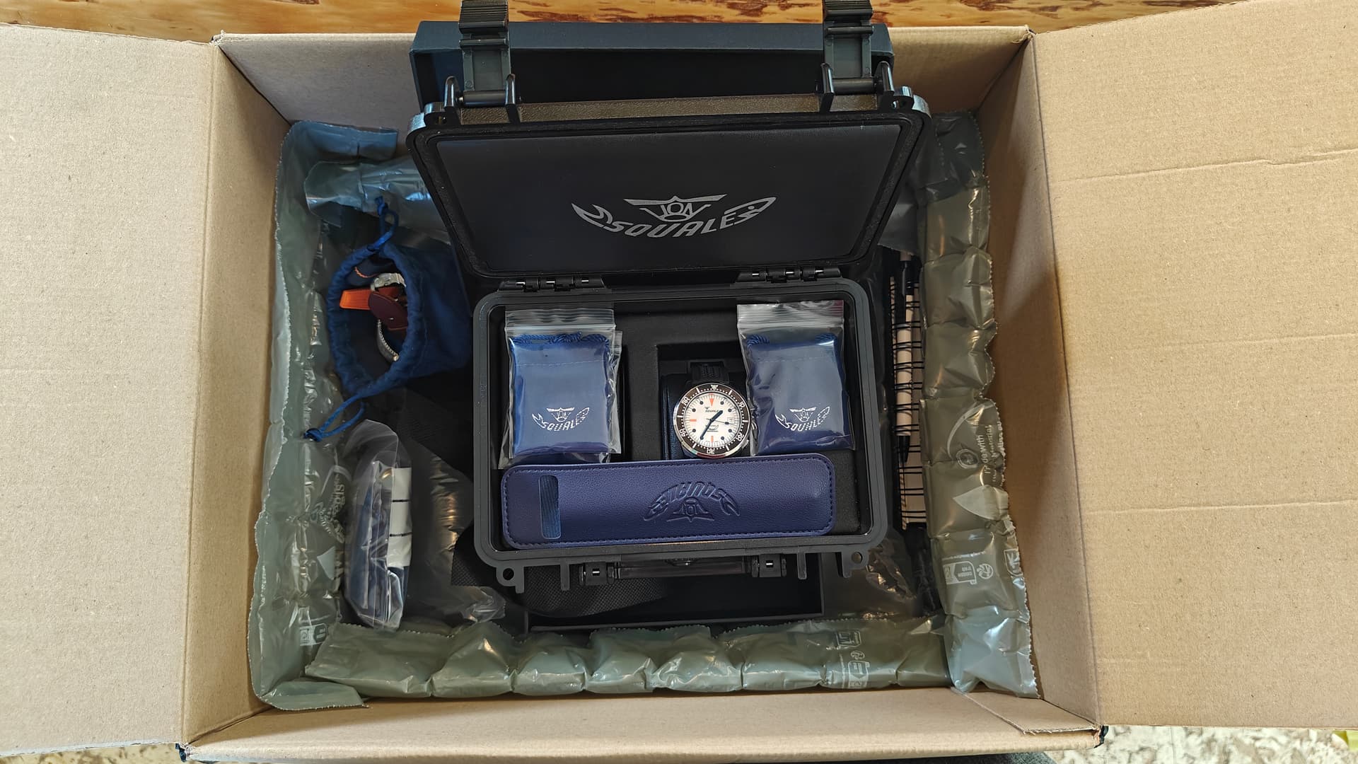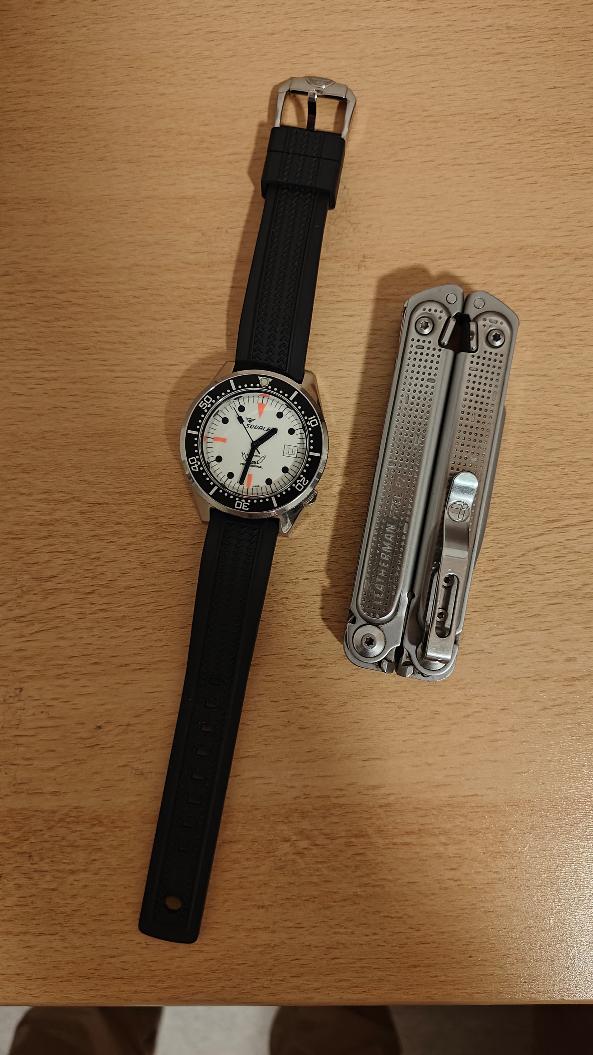 Eerste indruk is goed! Het horloge draagt kleiner dan de afmetingen doen vermoeden. Mijn ervaring met duikhorkoges beperkte zich vooralsnog tot 2 andere Fiffers - de Seiko Turtle en de MM300 hommage - en deze Squale is duidelijk meer voor mij.