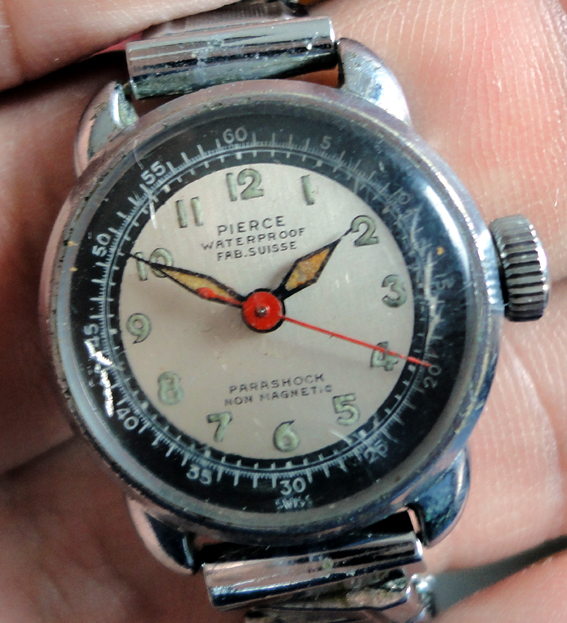 Een Pierce is altijd een spannend horloge, ongeachte het soort of de maat. Pierce deed namelijk de dingen op een geheel eigen wijze. Als iemand een chronograaf had uitgevonden, kon dat ook anders, getuige bijvoorbeeld dit uurwerk, de Pierce 134: