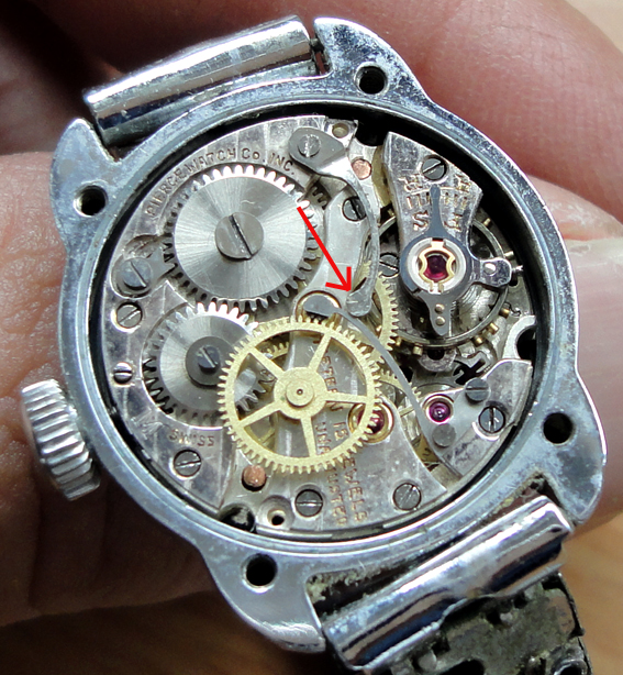 1 van de 2 “armpjes” functioneert als veertje om trillen of schokken van de secondewijzer tegen te gaan.