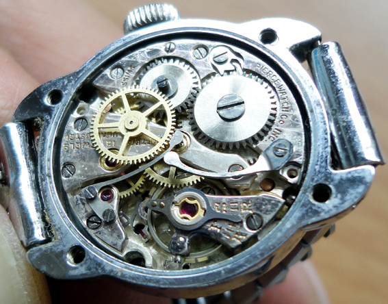 En het uurwerk… weer een 861, maar dan zonder automaat, dus in de basis hetzelfde uurwerk!!!/??? Met dien verstande dat ook hiermee iets niet klopt, namelijk die twee armen (ik weet dat het de juist term niet is maar kom er even niet op) over het uurwerk. De ene snap ik, die is voor de centrale seconde. Maar die tweede??? Ik sta weer eens voor een raadsel, ik heb dit nog nooit gezien.