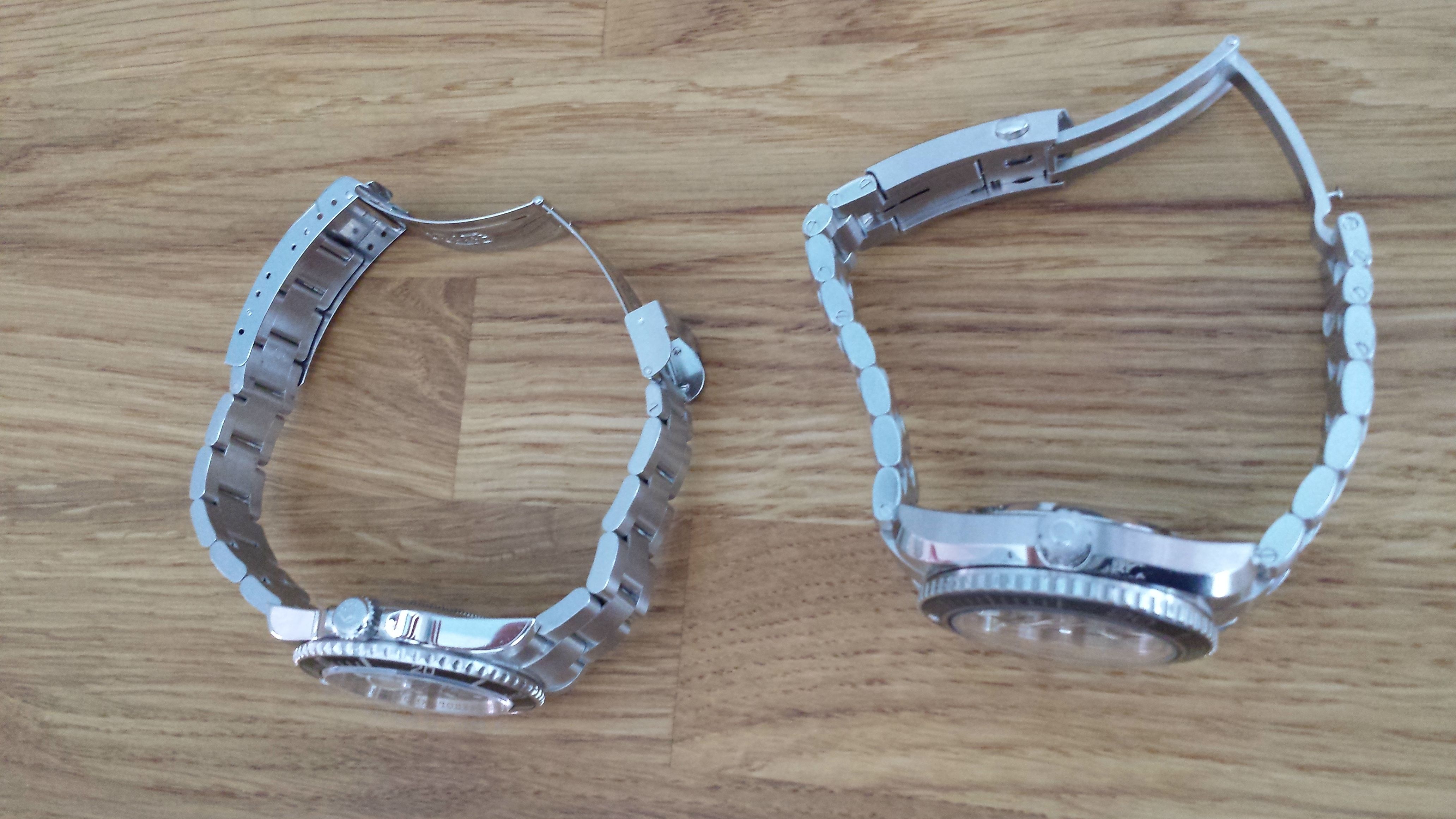 Wat ik me afvraag na het zien van de foto’s: waarom heeft de sluiting van de Rolex van die iele stukjes staal? Ik zou verwachten dat een horloge van zo’n kaliber gebruik maakt van dik staal zoals bij de Omega.