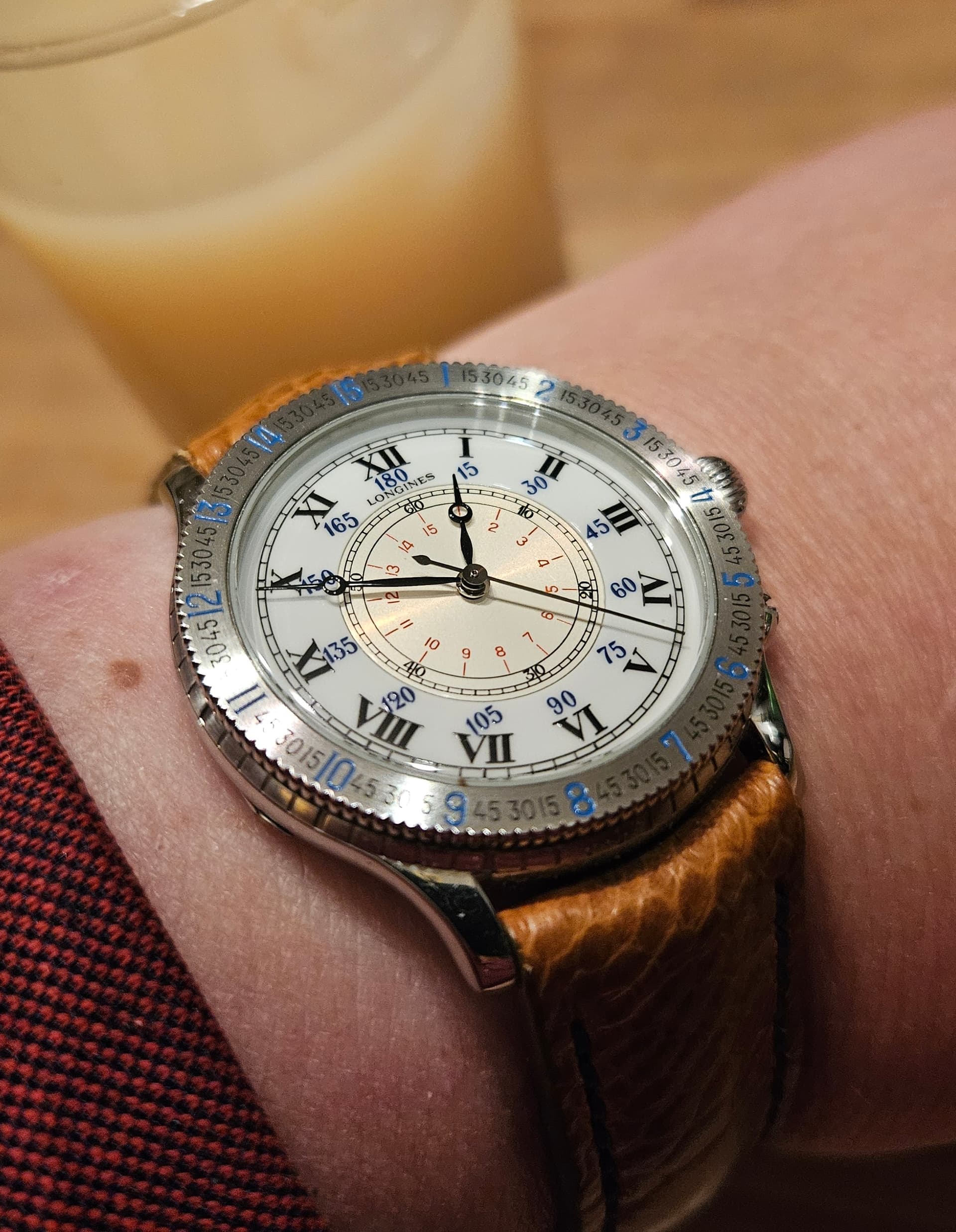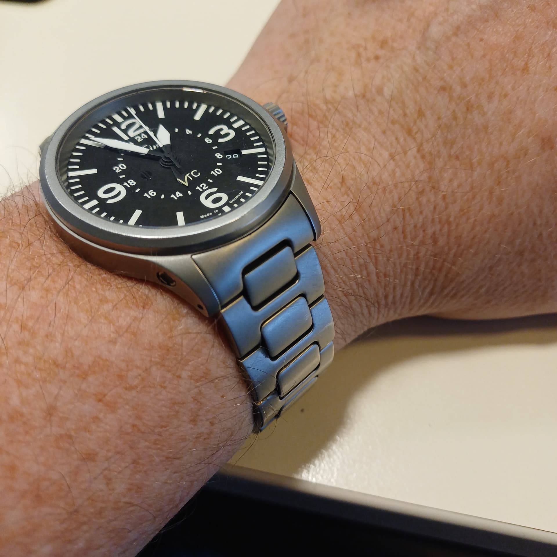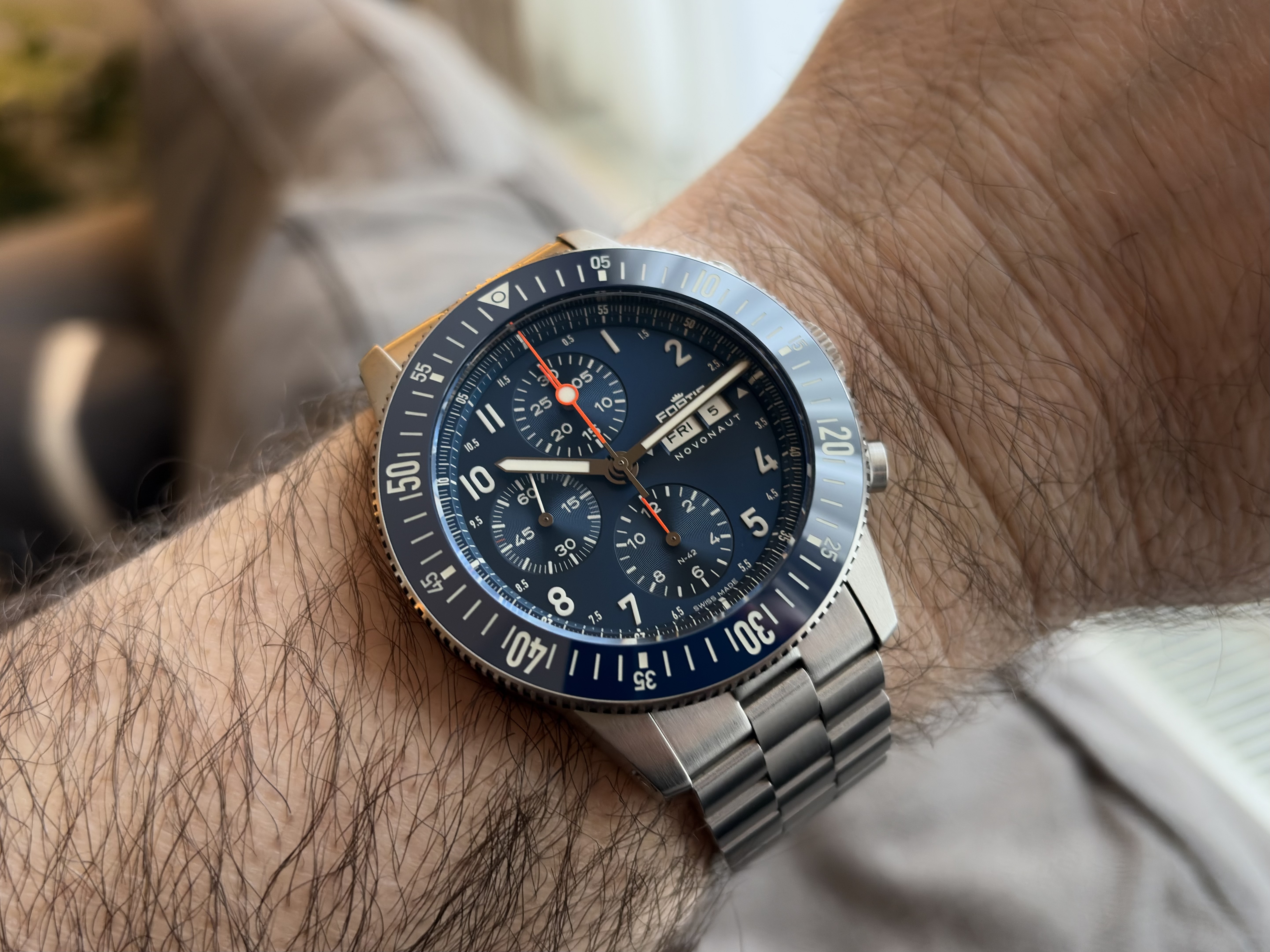 Vind ik juist heel handig aan de linkerpols. De kroon zit nooit irritant tegen je hand en met mijn duim start ik (de enkele keer dat ik die gebruik) de chronograaf-functie; die knop zit nu linksonder.