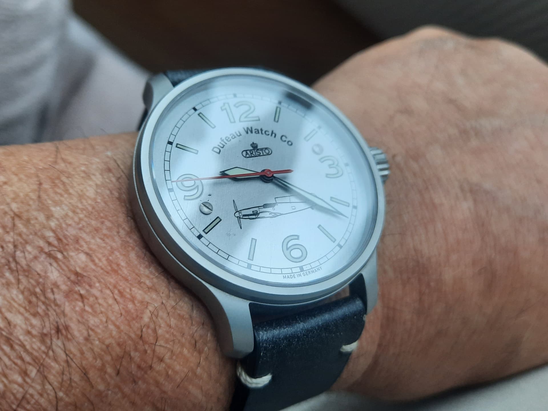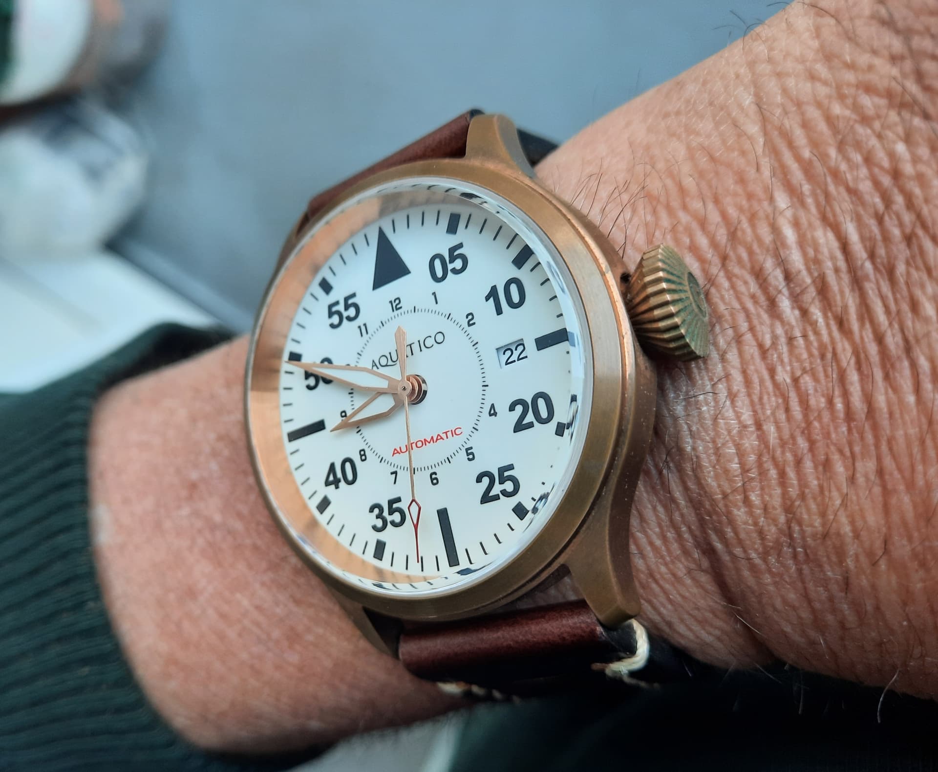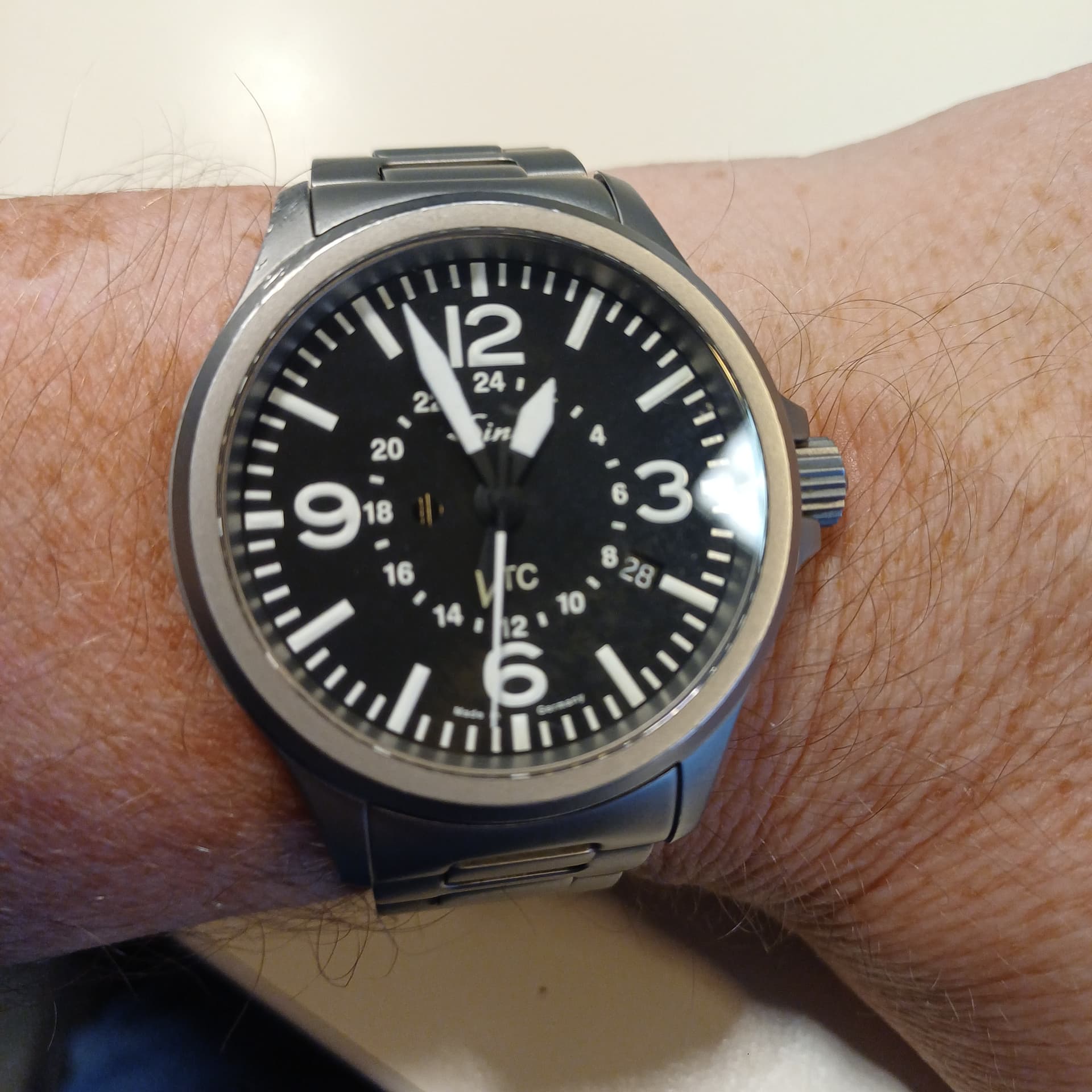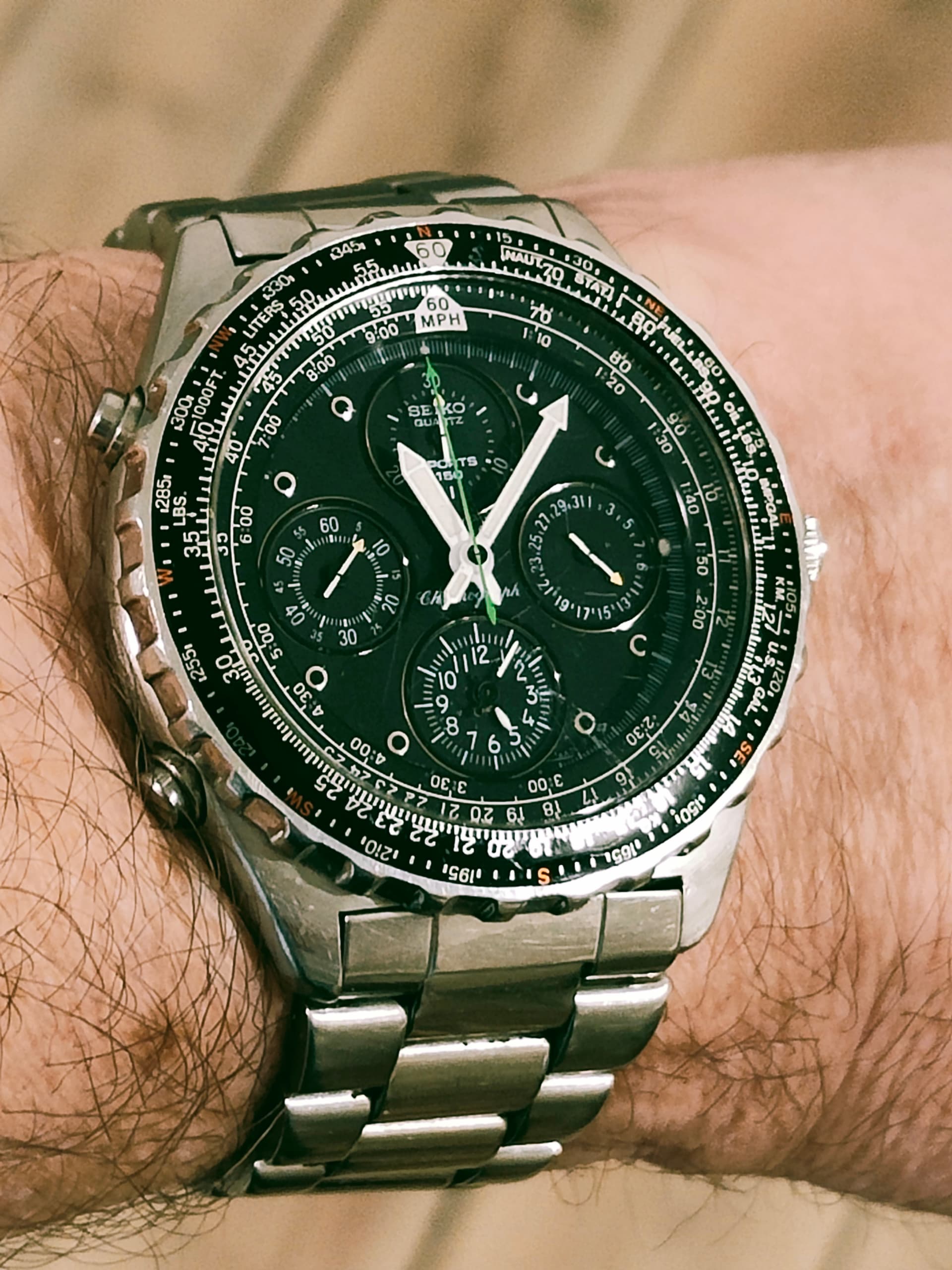 Vind ik juist heel handig aan de linkerpols. De kroon zit nooit irritant tegen je hand en met mijn duim start ik (de enkele keer dat ik die gebruik) de chronograaf-functie; die knop zit nu linksonder.
