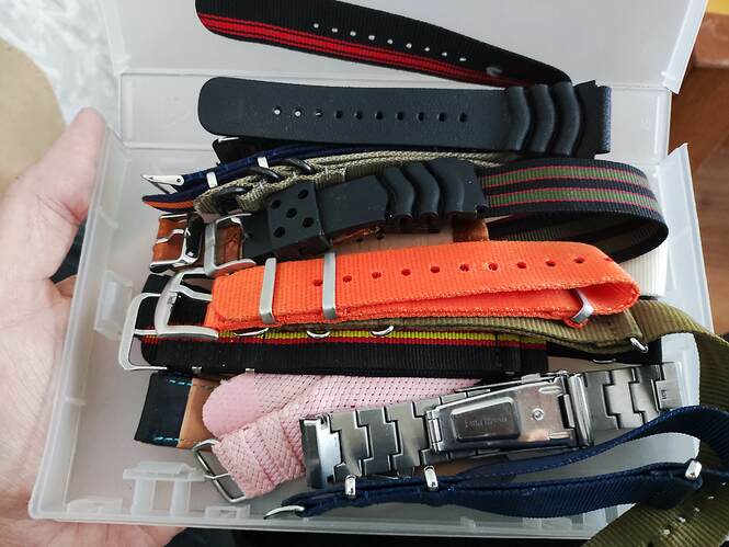 Het is duidelijk dat deze Seiko al het een en ander heeft meegemaakt! Er zit een halve zeecontainer aan bandjes bij en een paar kilo aan catalogi. Heel leuk, ga ik me mee vermaken deze week!