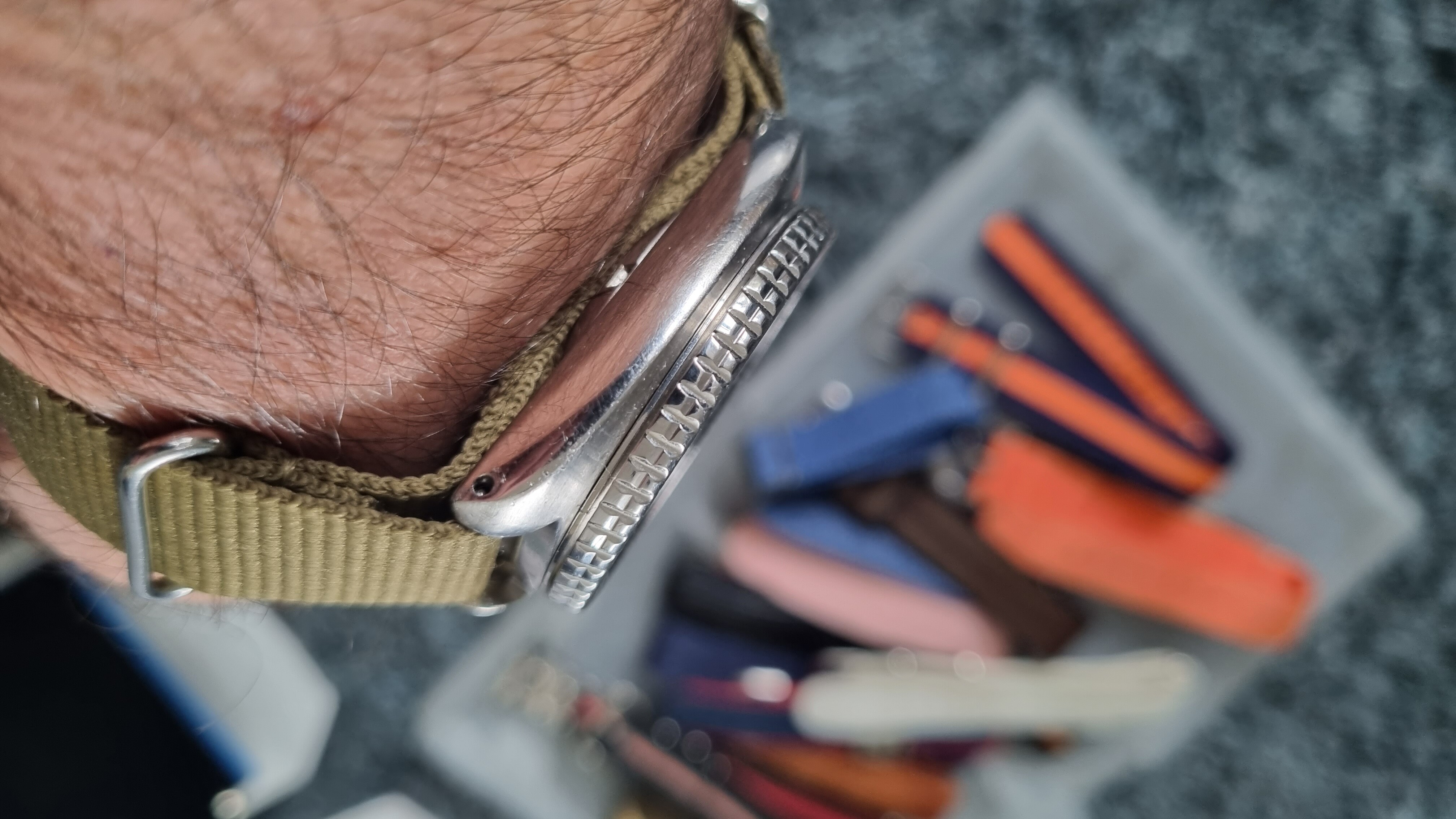 Na wat experimenteren met de nato’s (daar ben ik niet zo’n fan van) maar aan de slag gegaan met de bracelet. Uit alle onderdelen een juiste maat kunnen samenstellen en monteren.