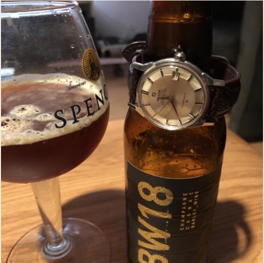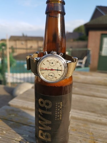 Nu een beetje genieten van de lichtinval op het horloge bij het zwembad onder het genot van een champagne cognac gerstenwijn… (geen idee die heeft @Blauwbeer er bij gedaan)