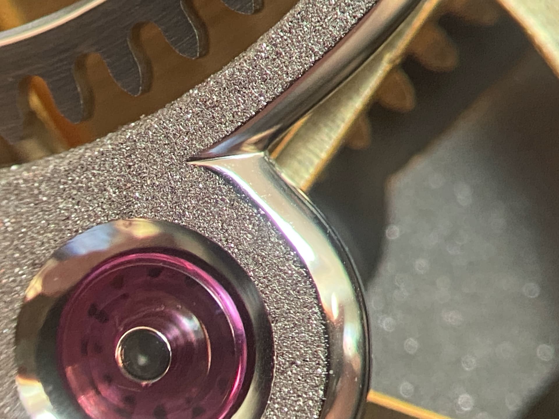 Enkele overzichtsfoto’s, maar vooral een paar macro’s die pas écht laten zien wat woorden nauwelijks kunnen beschrijven: de sublieme afwerking. De handgepolijste anglage schittert in het licht, de randen vloeien als vloeibaar metaal, en de scherpe inward angles getuigen van een meesterschap dat bijna verdwenen is in de moderne horlogerie.