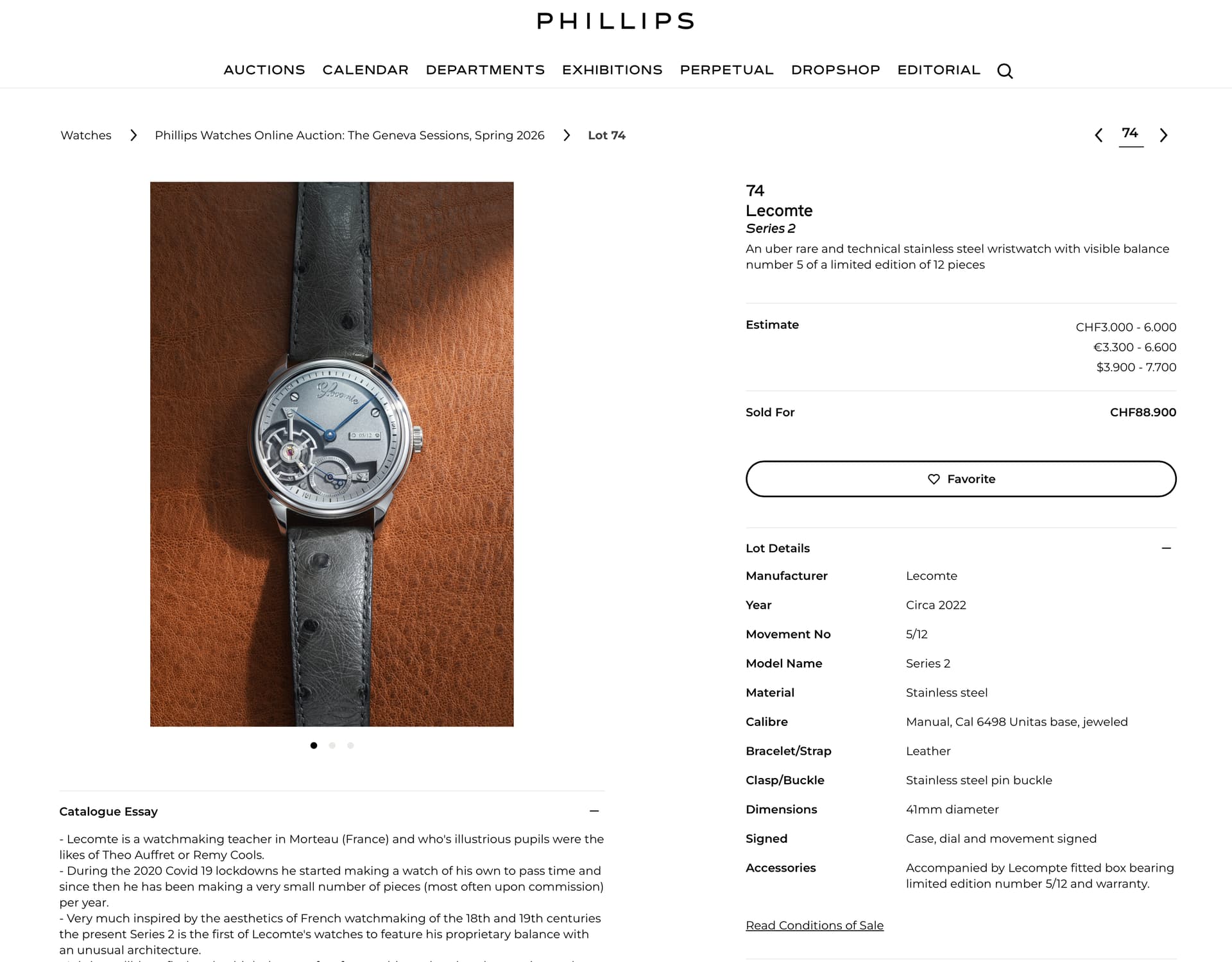 Mooi omschreven in een uitgebreid artikel dat Phillips schreef naar aanleiding van de eerste Lecomte die op een veiling komt.