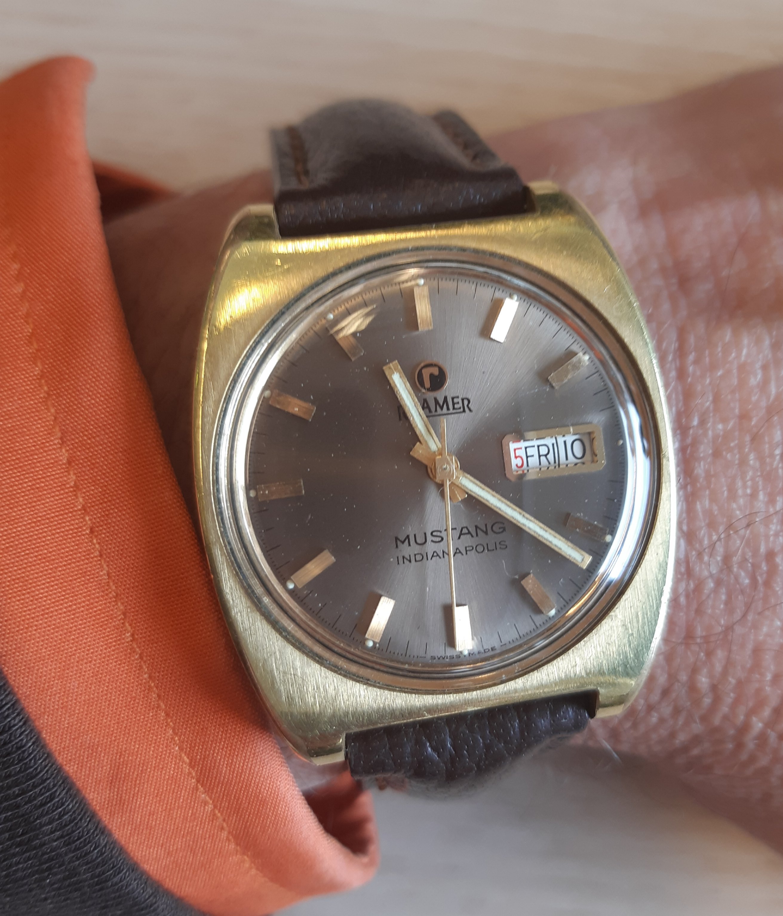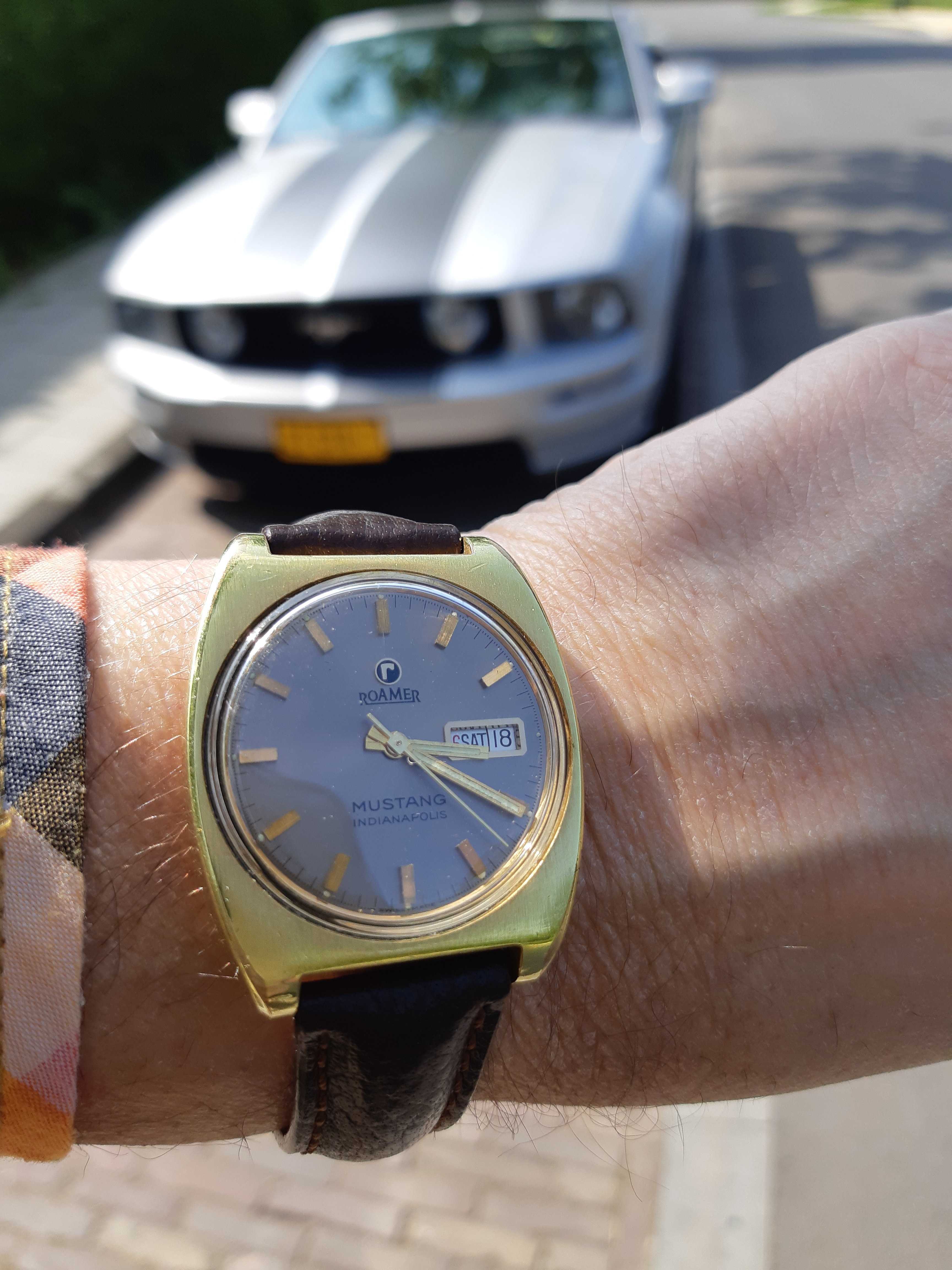 Reden voor die vraag was dat ik als Mustang eigenaar mijn oog had laten vallen op een fraai exemplaar van de Roamer Mustang Indianapolis die op Catawiki stond. Het horloge heb ik gelukkig binnen kunnen slepen en van de vorige eigenaar heb ik ook nog wat informatie over het horloge en de relatie met Ford en het circuit Indianapolis kunnen vergaren.