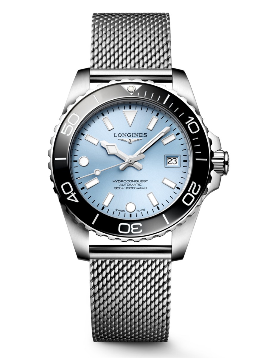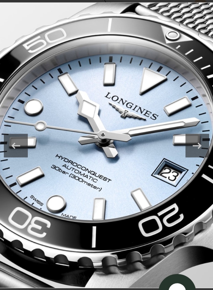 Het gaat om de “serenity blue” versie van de Fortis en de ijsblauwe versie met de donkerblauwe bezel van de Longines.