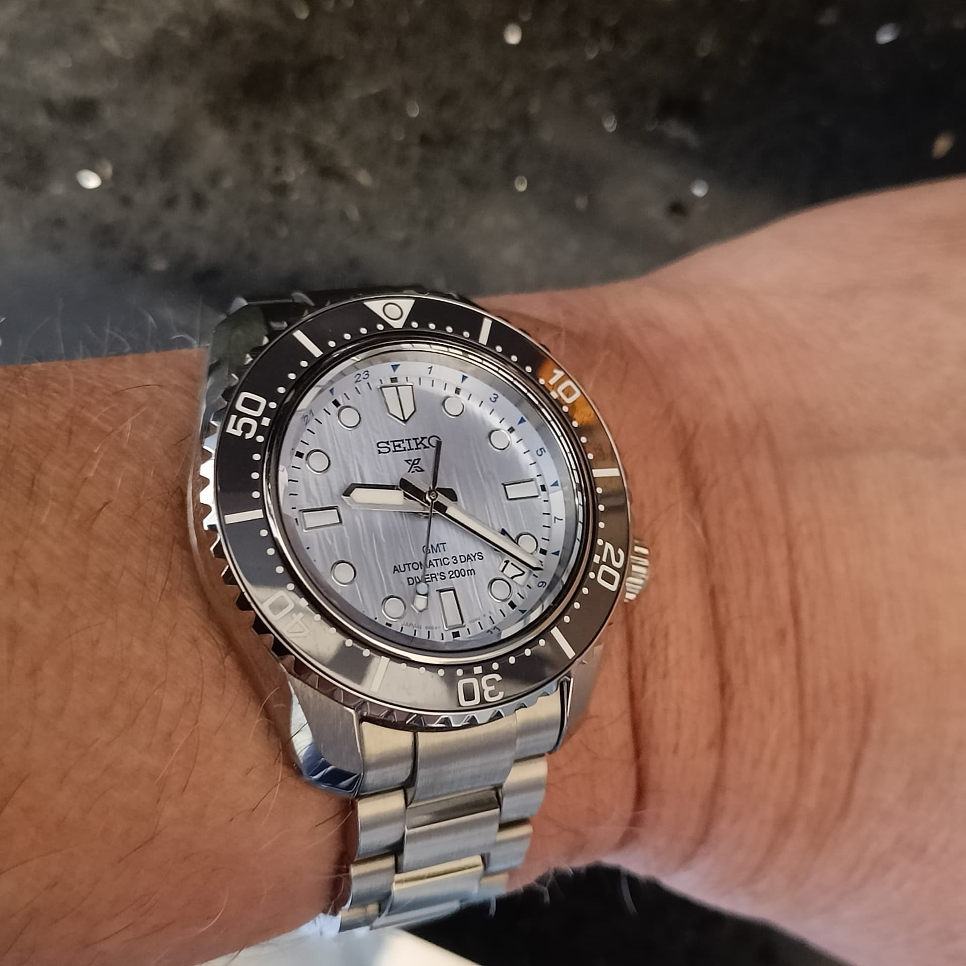 Je hebt opties. Neem nu een Seiko Marinemaster SJE099. Die is lichtblauw van wijzerplaat.
